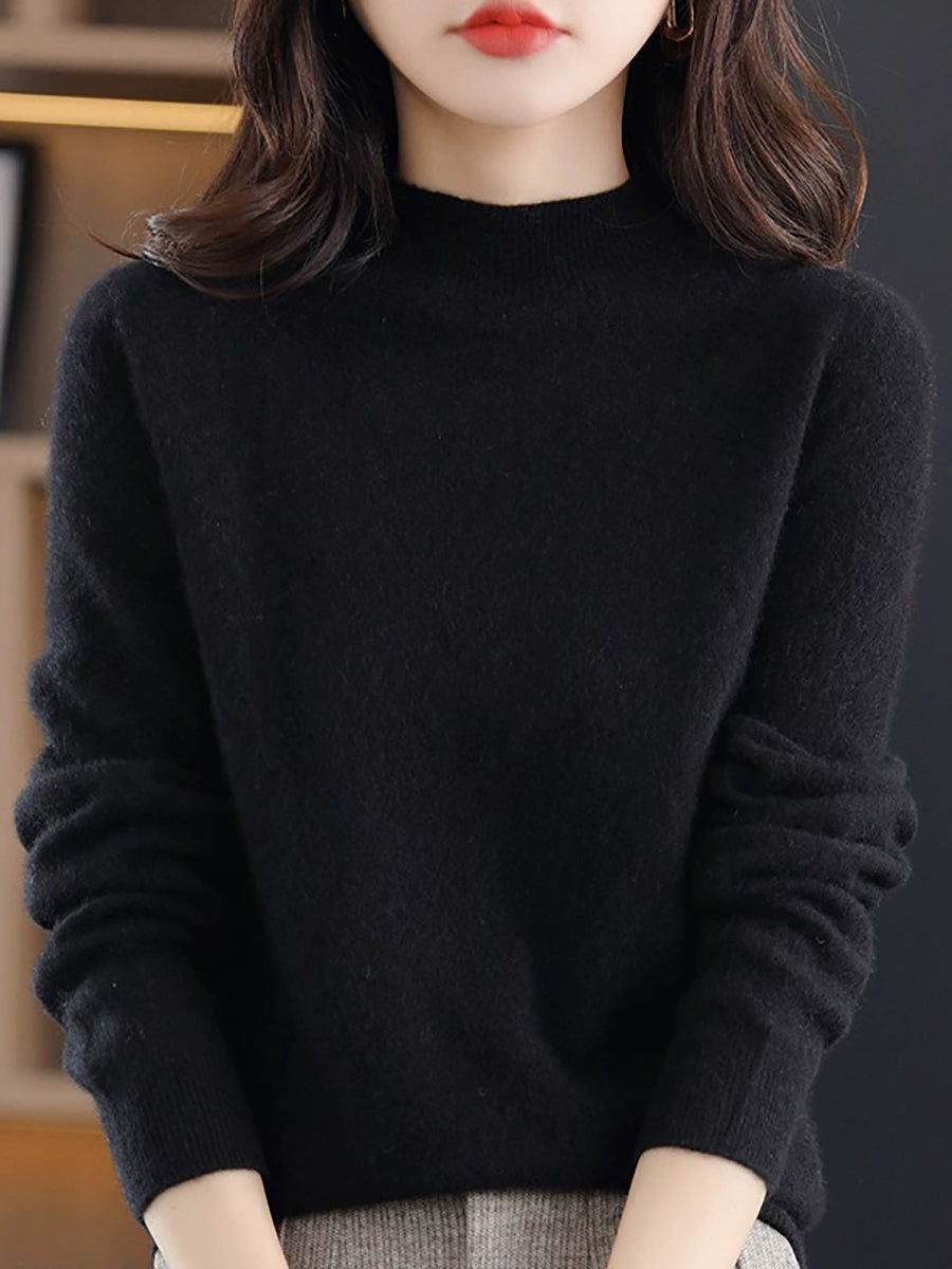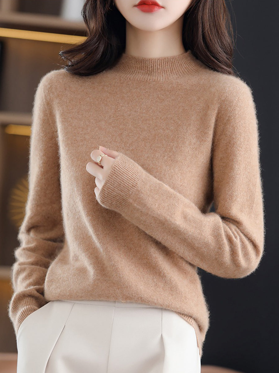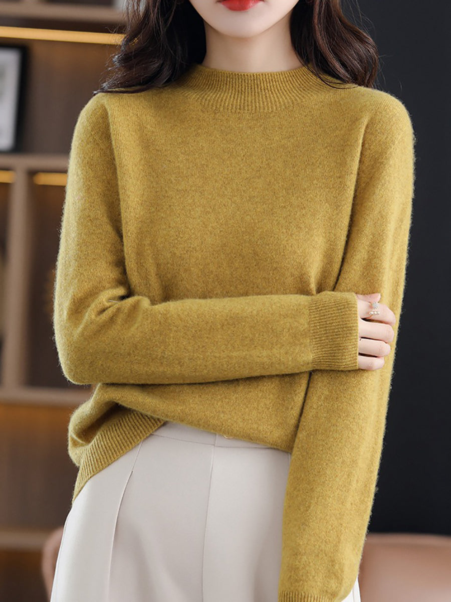 Dámský jarní vlněný svetr s polovičním rolákem v čistých barvách
