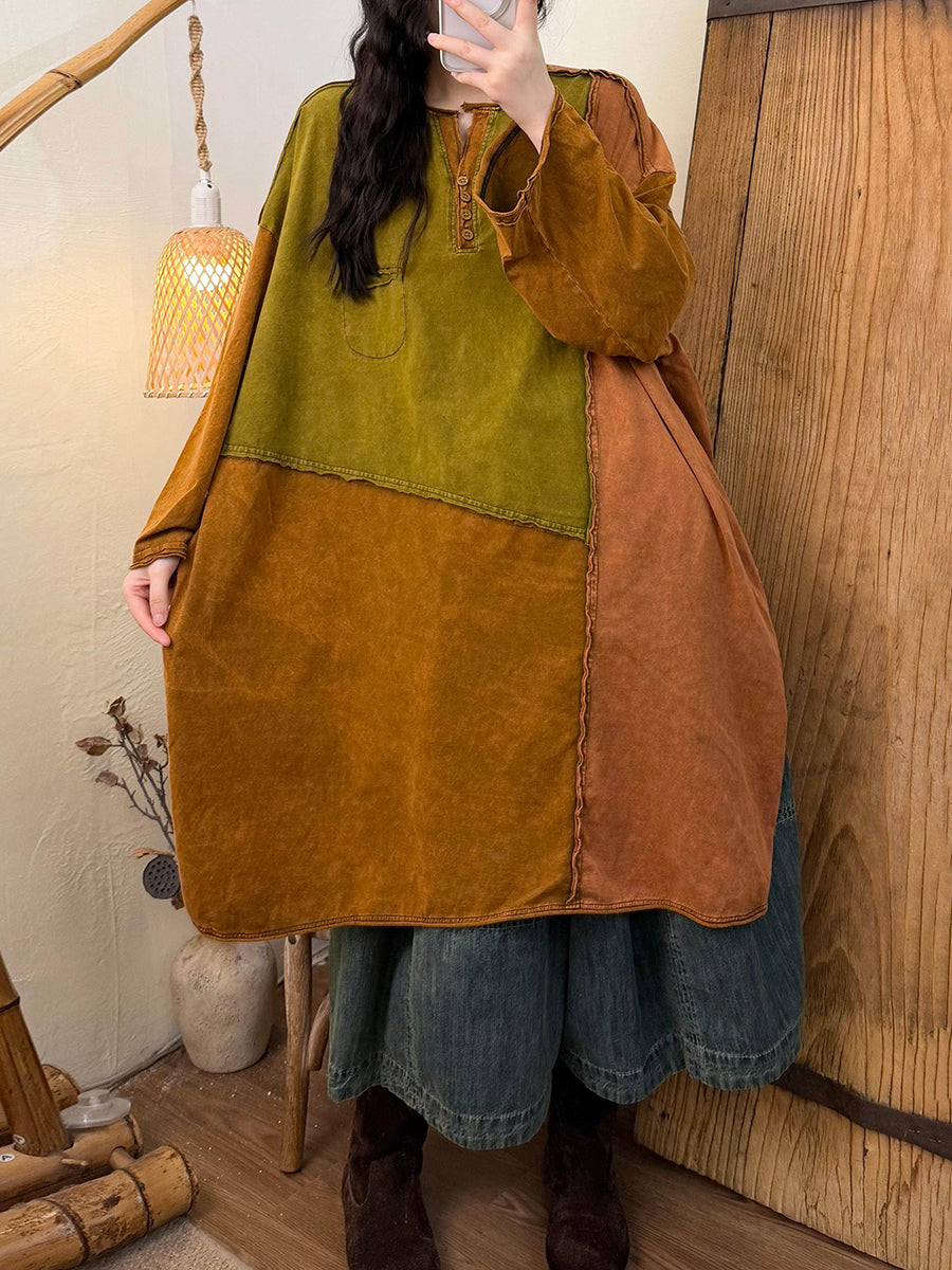 Dámské jarní retro bavlněné šaty s barevnými bloky