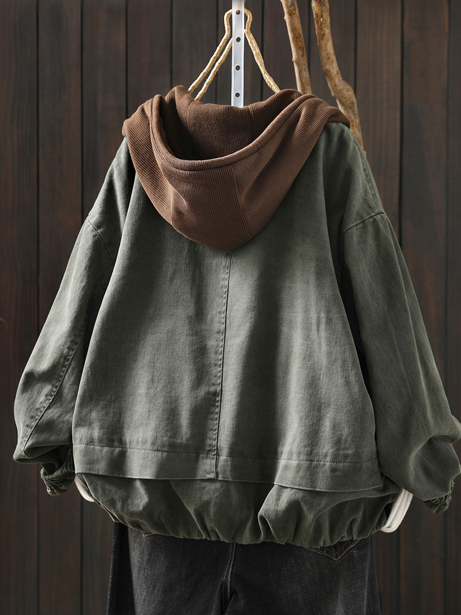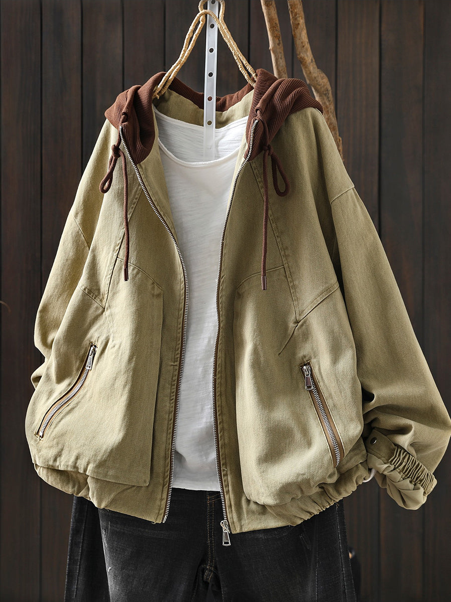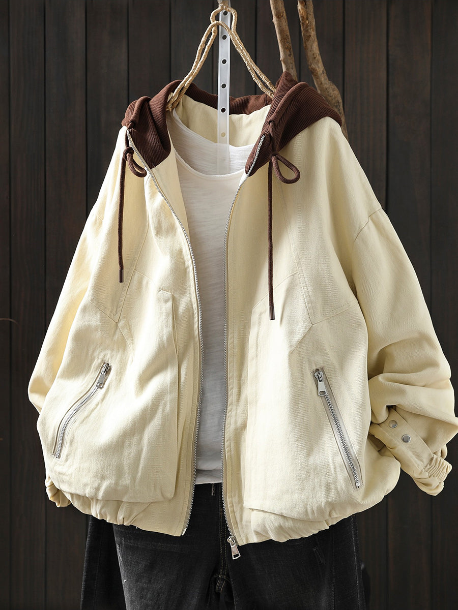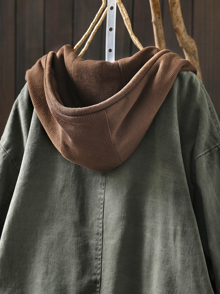 Dámská jarní retro bavlněná bunda s kapucí v barevných blokech