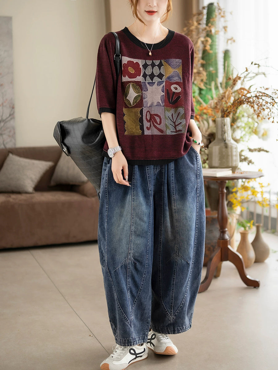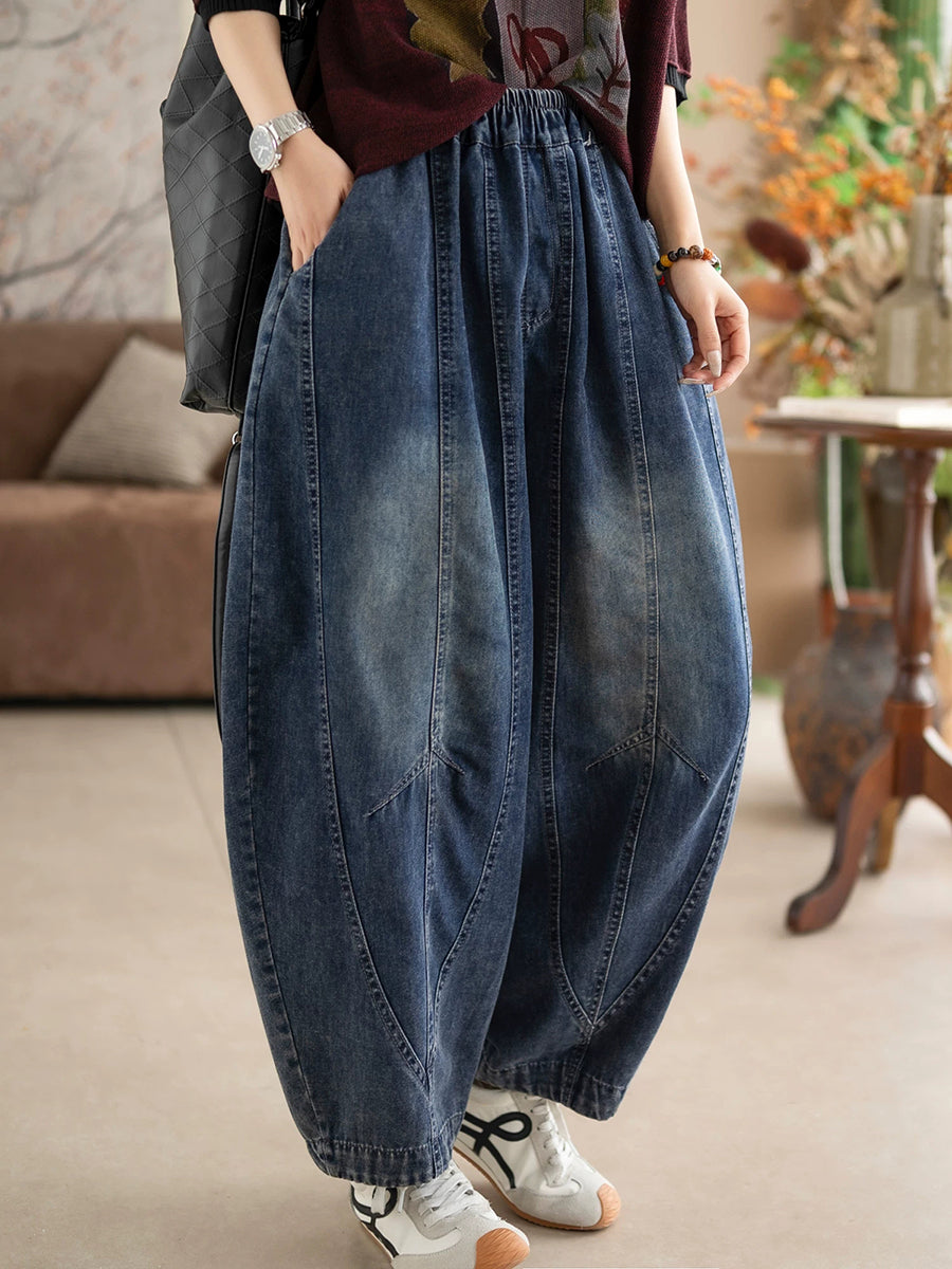 Dámské jarní vintage džínové kalhoty se splývavým vzorem