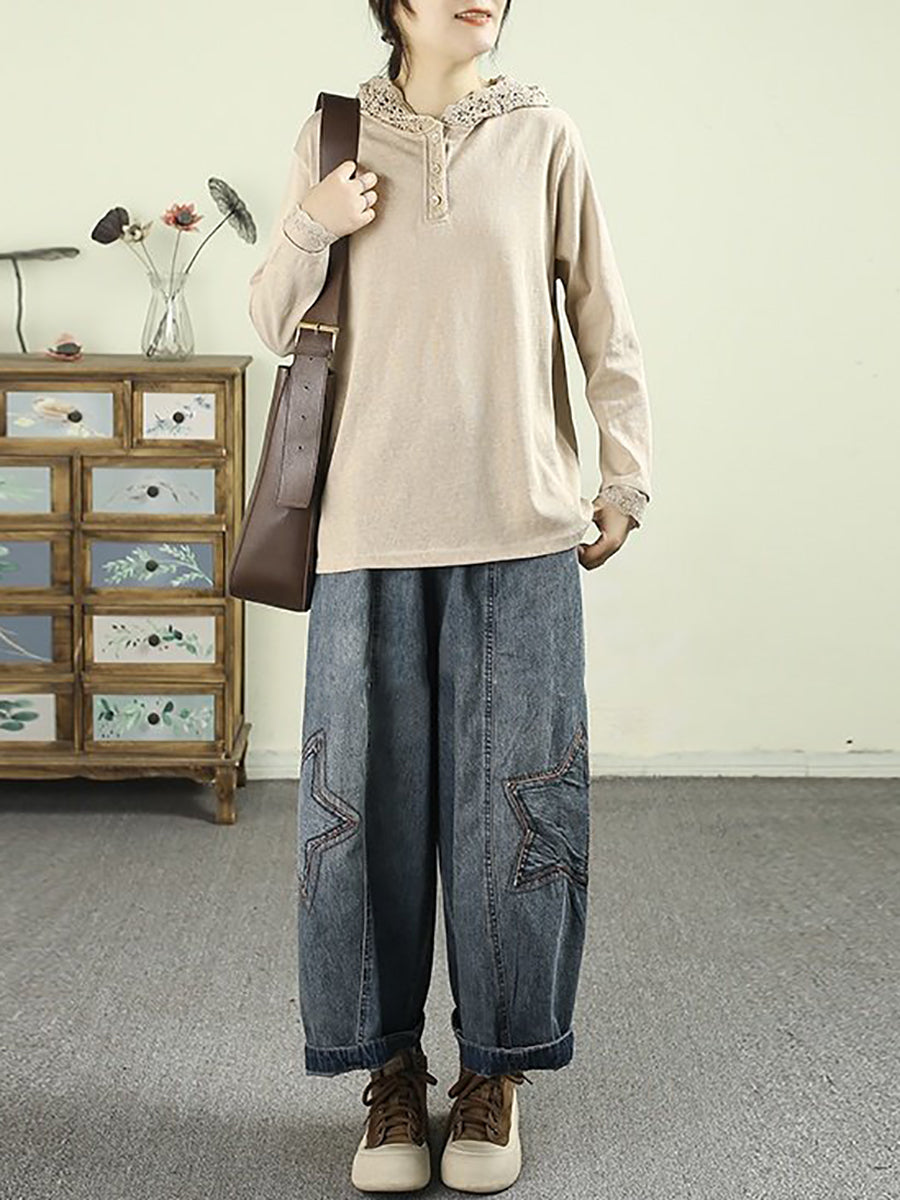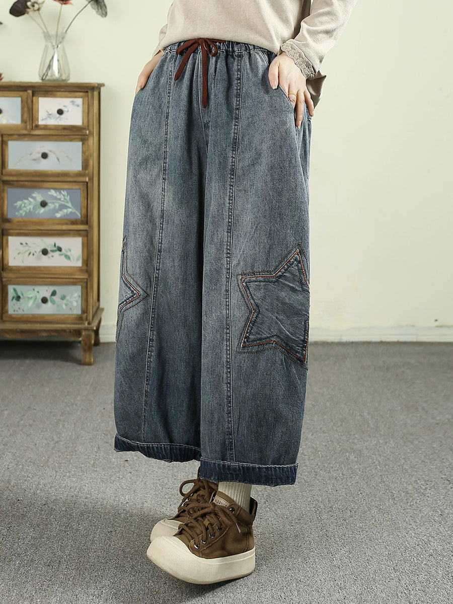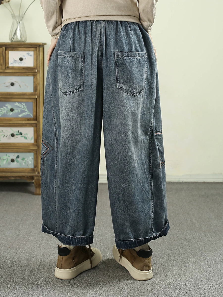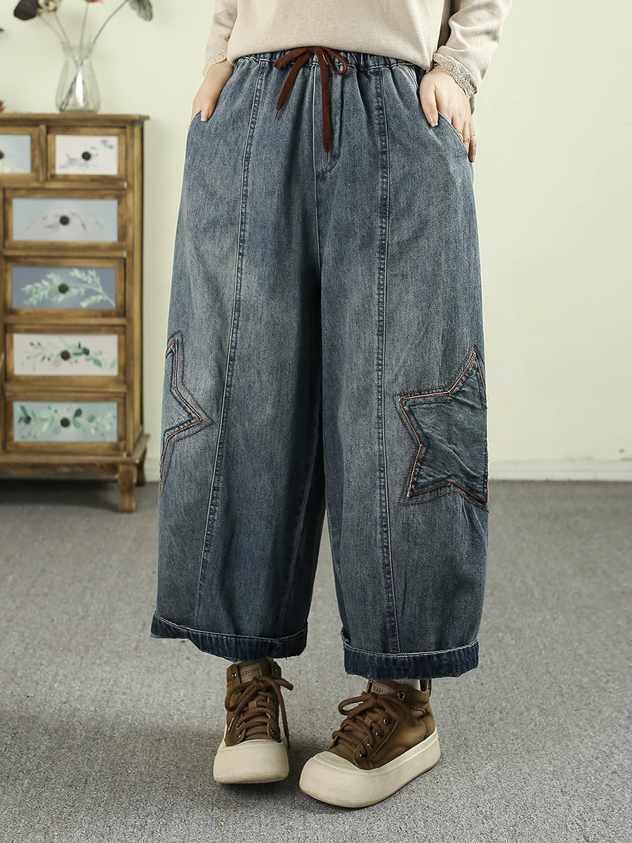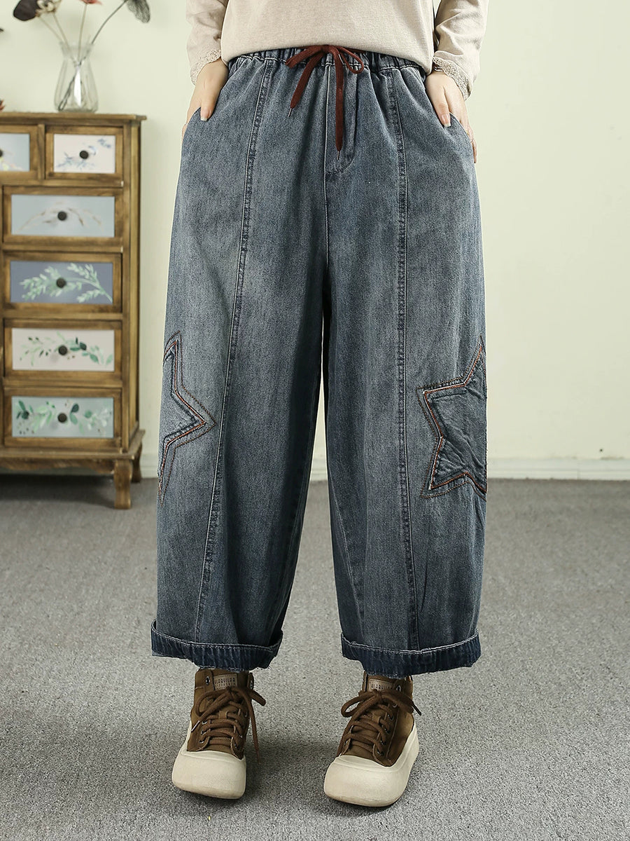 Dámské jarní vintage džínové harémové kalhoty s hvězdami