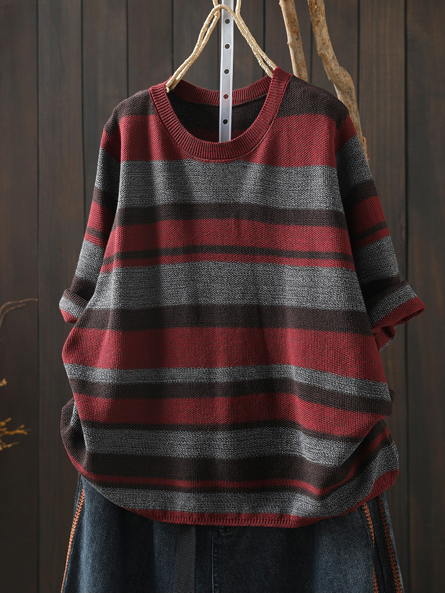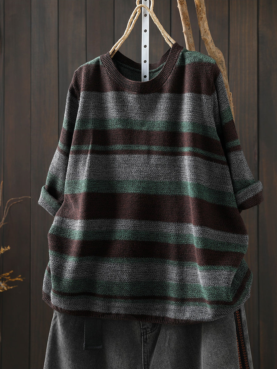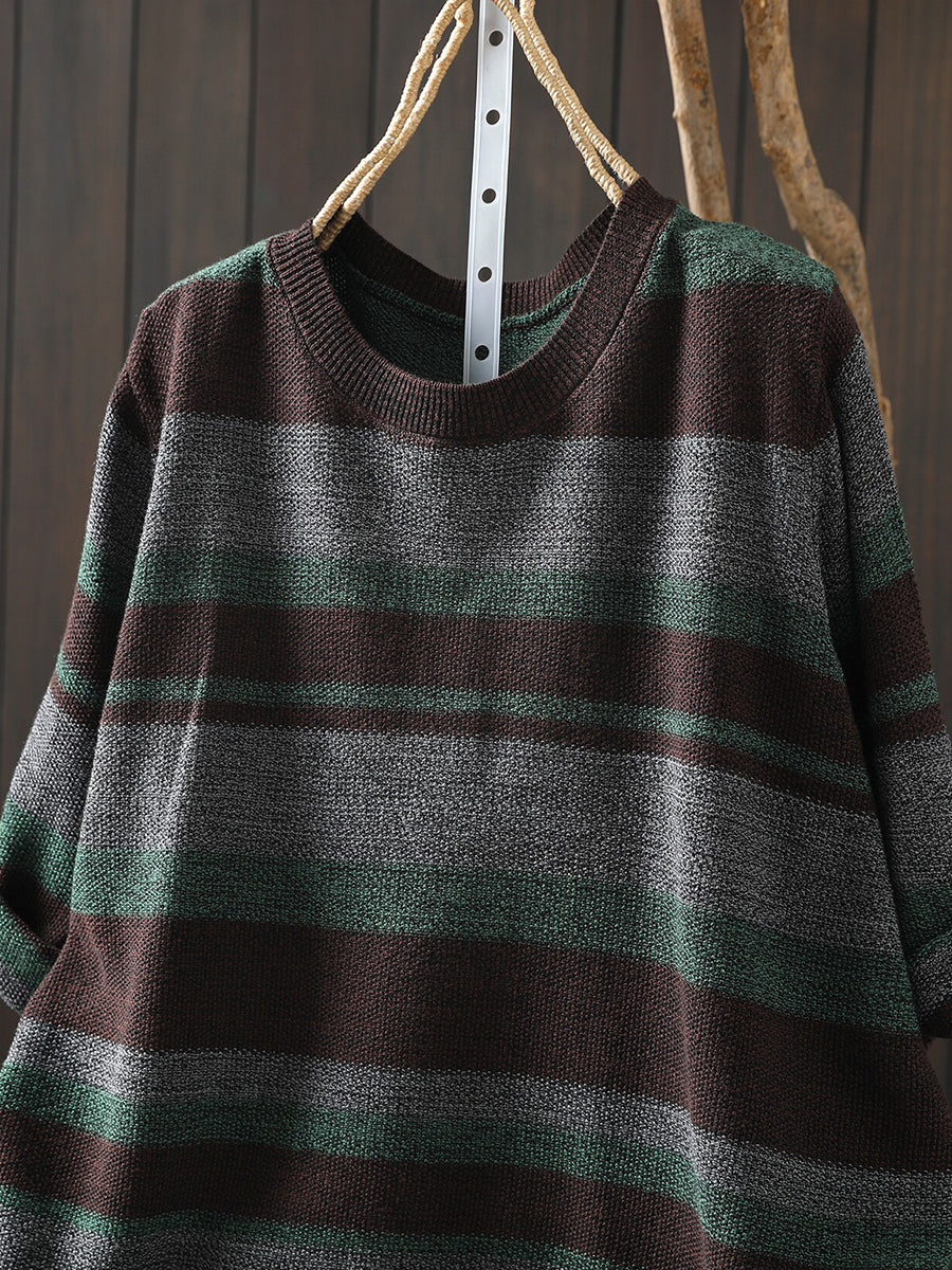 Dámská letní pletená halenka s uměleckými pruhy a výstřihem do O-neck