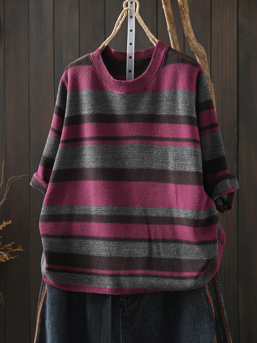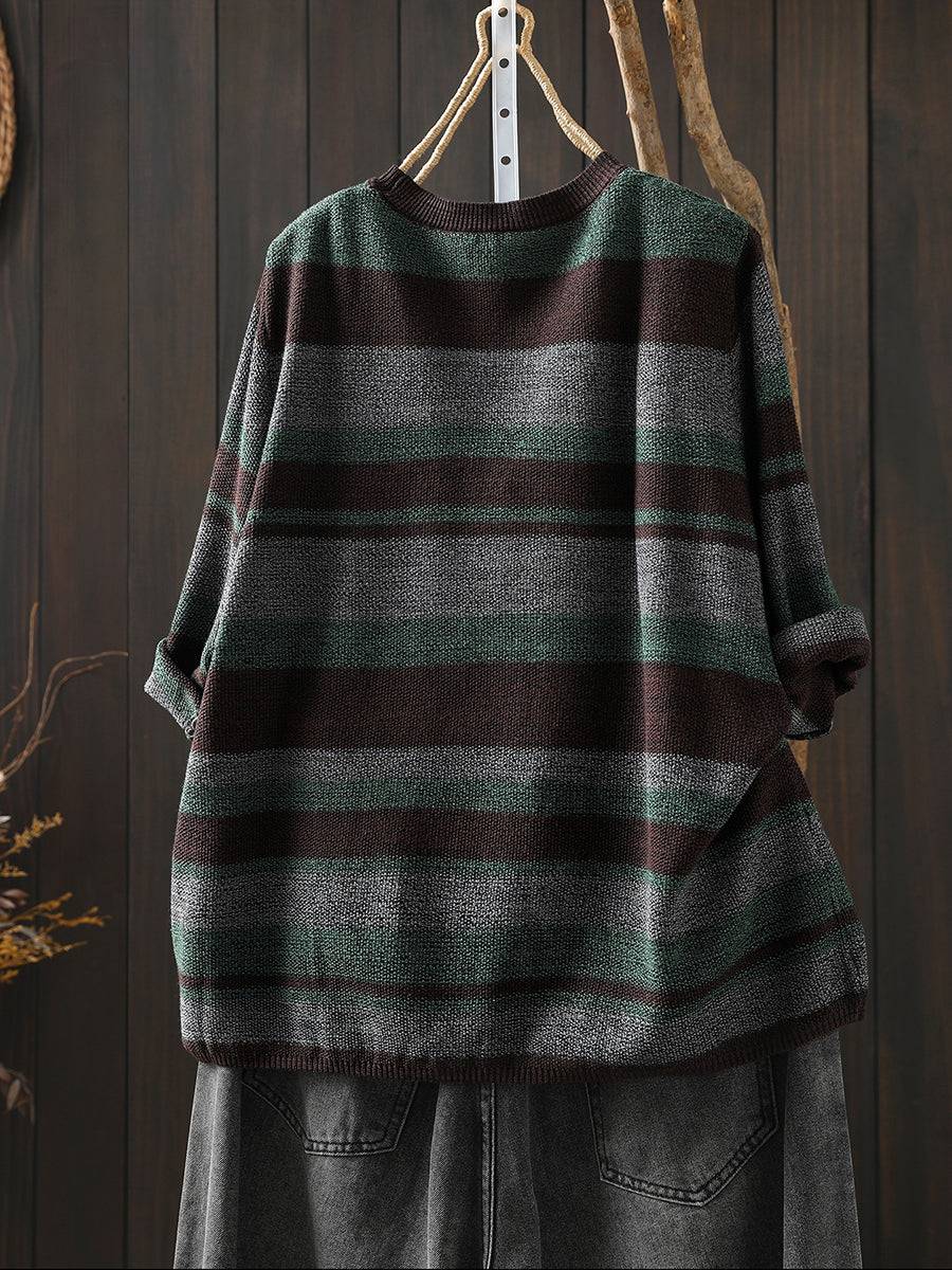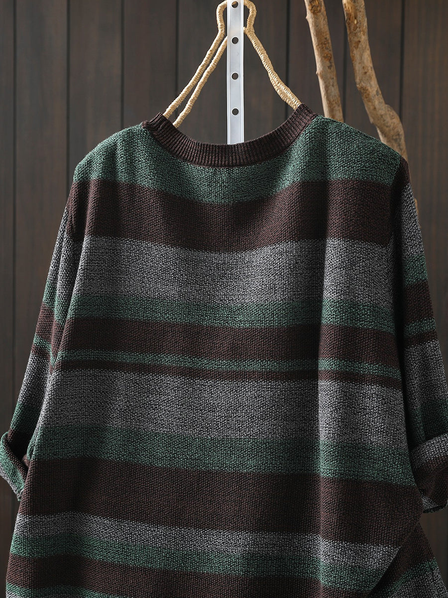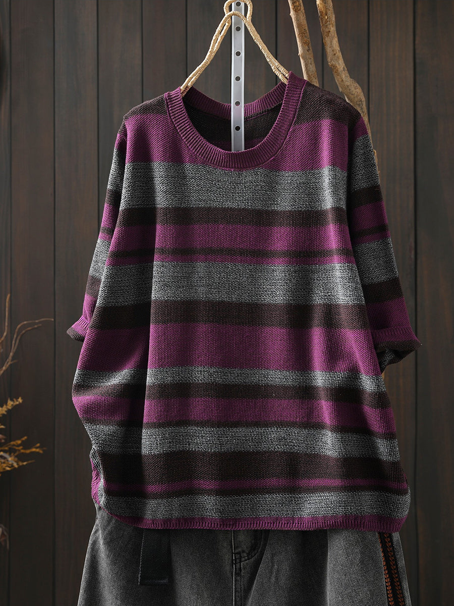Dámská letní pletená halenka s uměleckými pruhy a výstřihem do O-neck