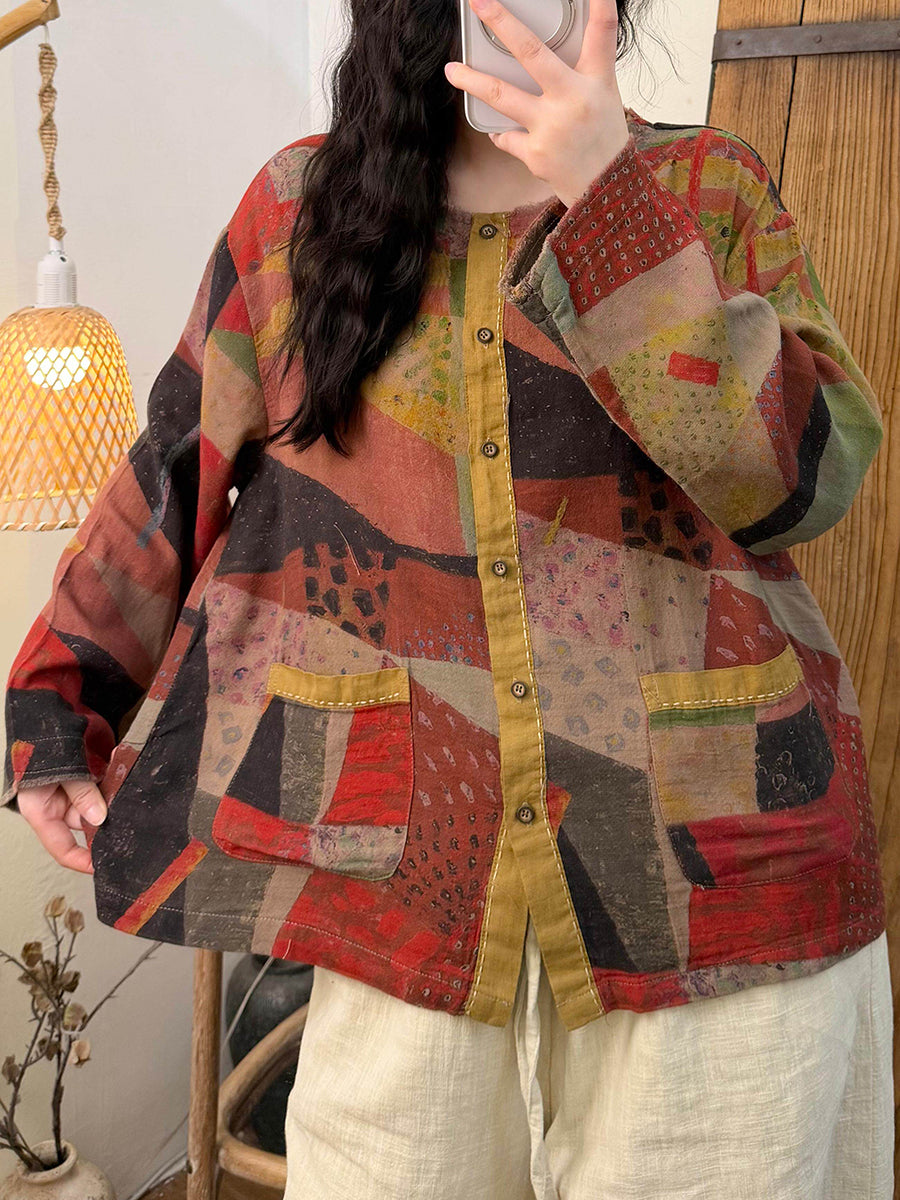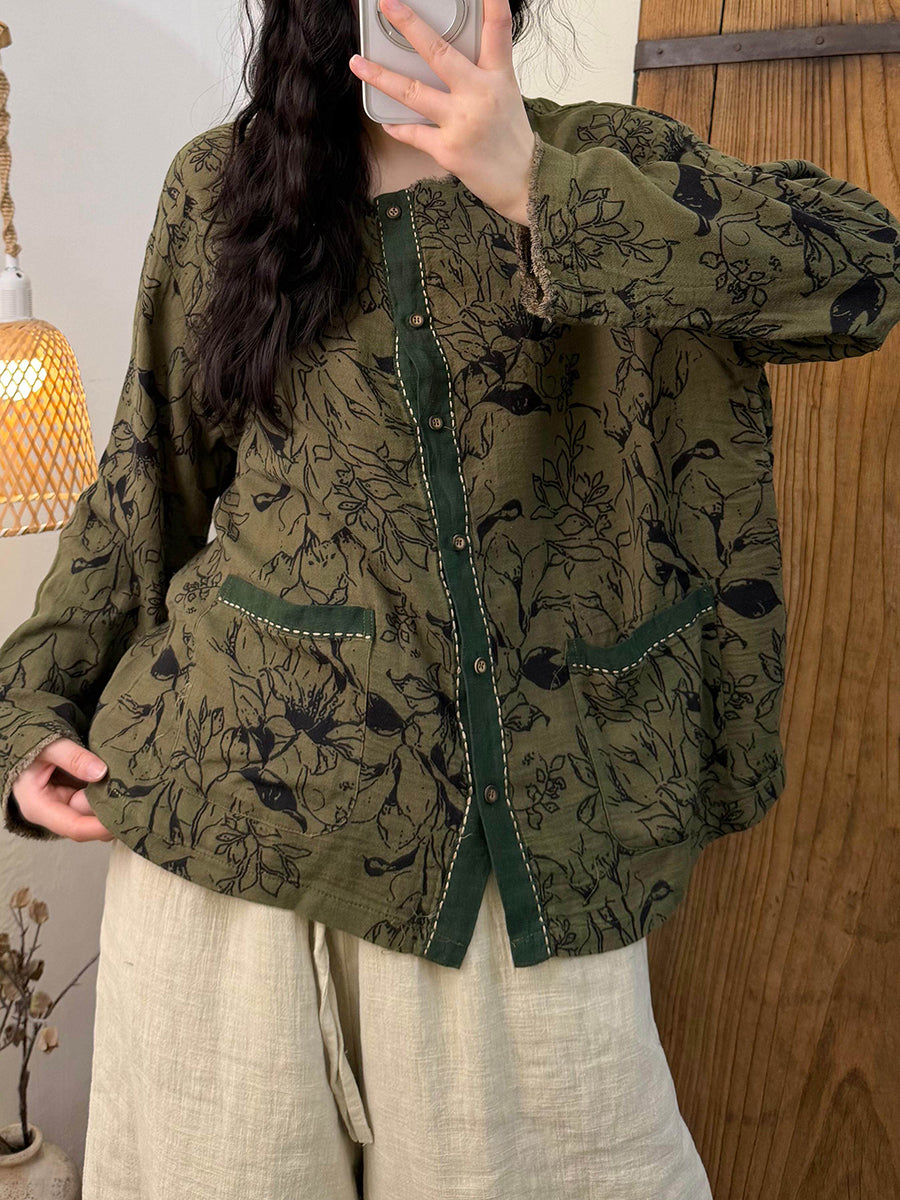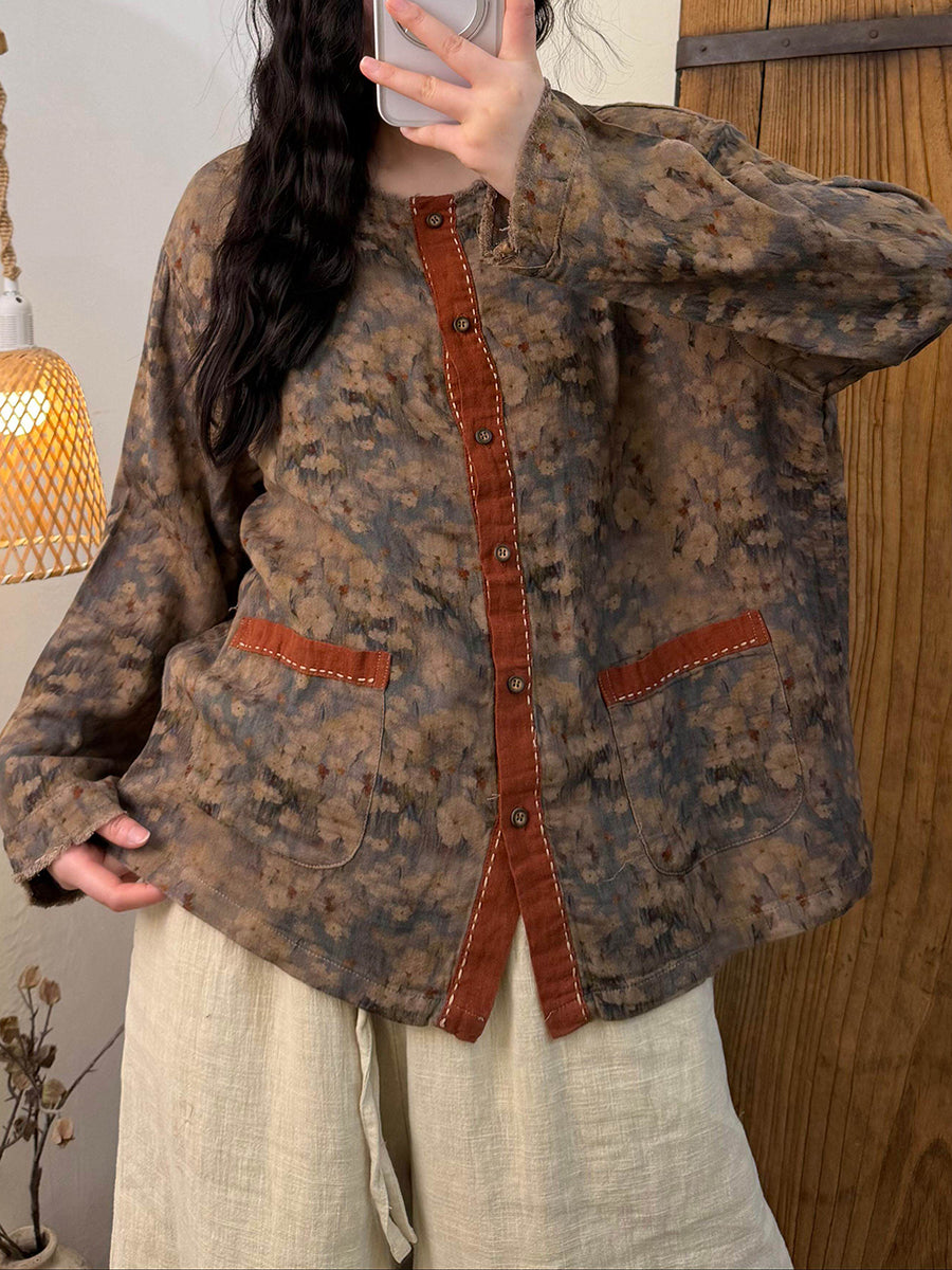 Dámské vintage jarní květinové tričko s výstřihem do O-neck