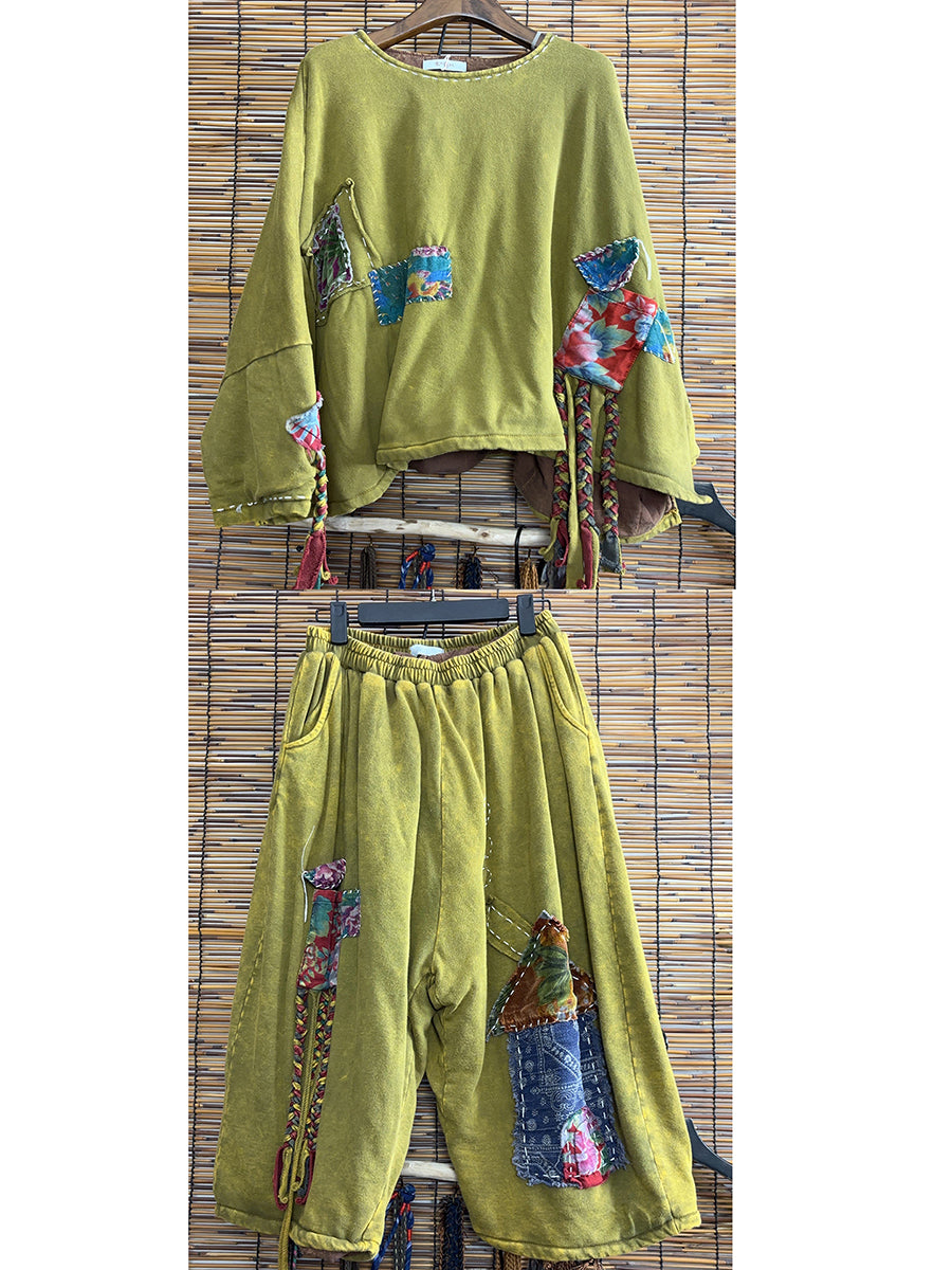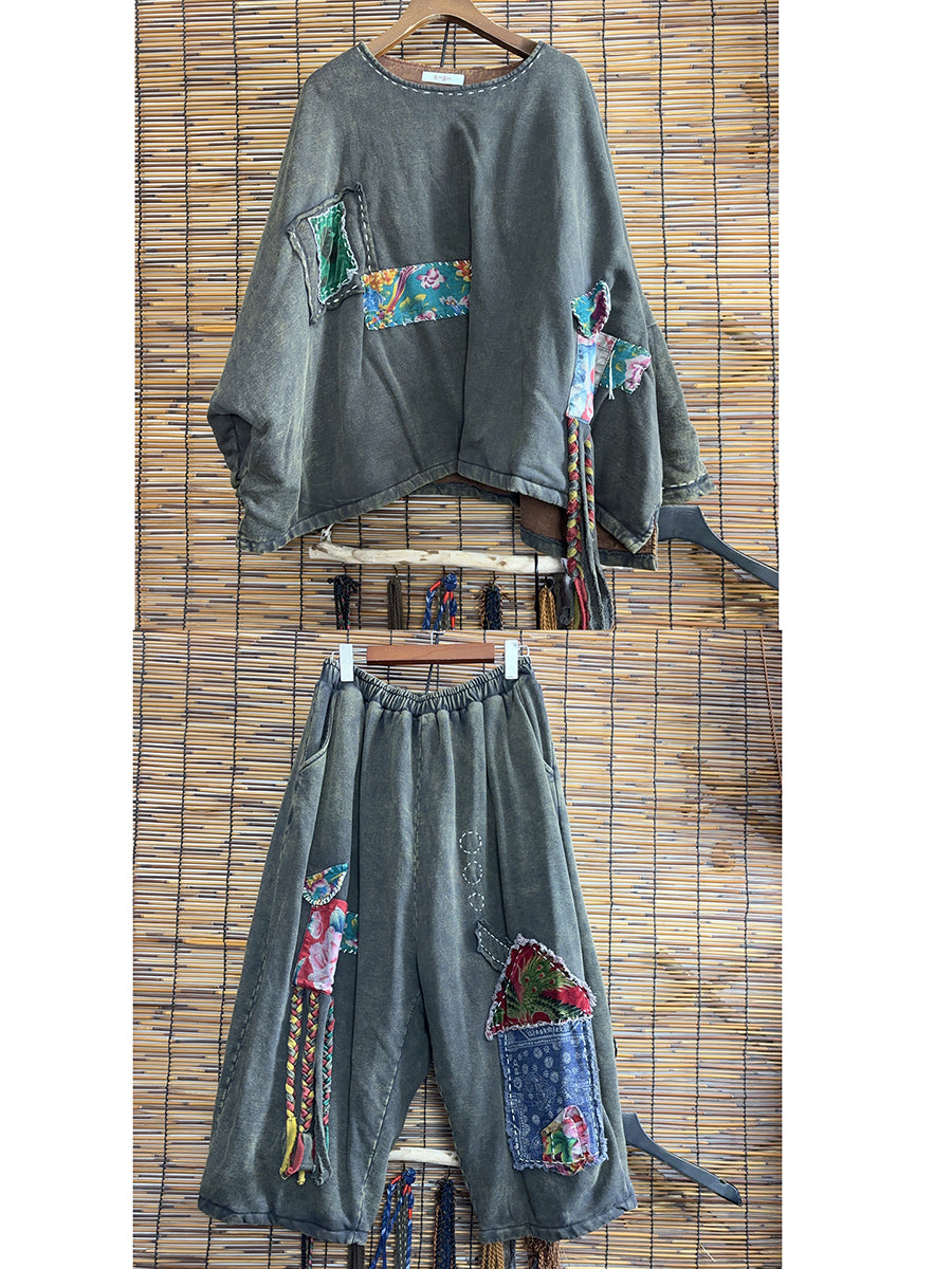Dámské zimní retro patchworkové obleky s výstřihem do O-neck a střapci