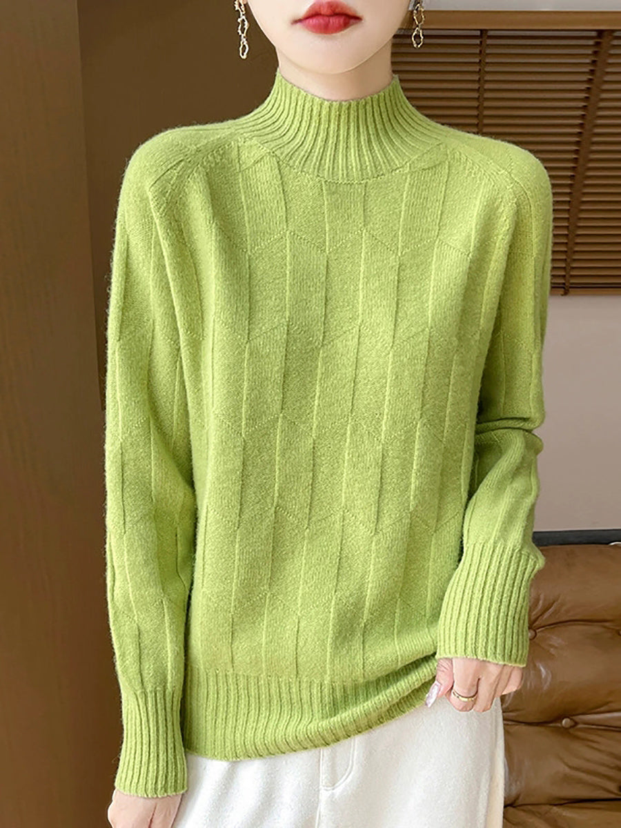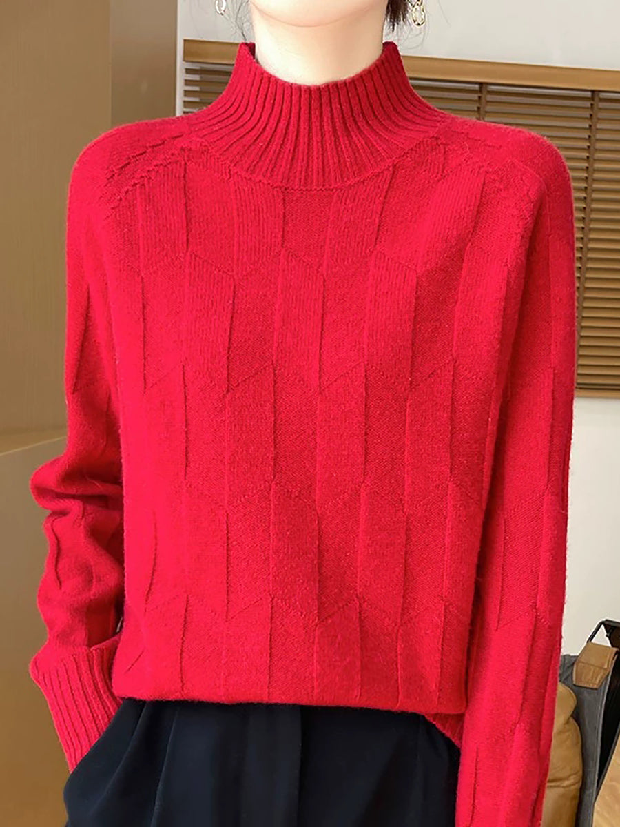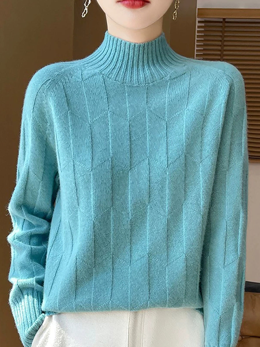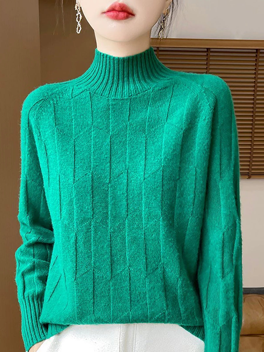 Dámský umělecký zimní svetr s polovičním rolákem v čistých barvách