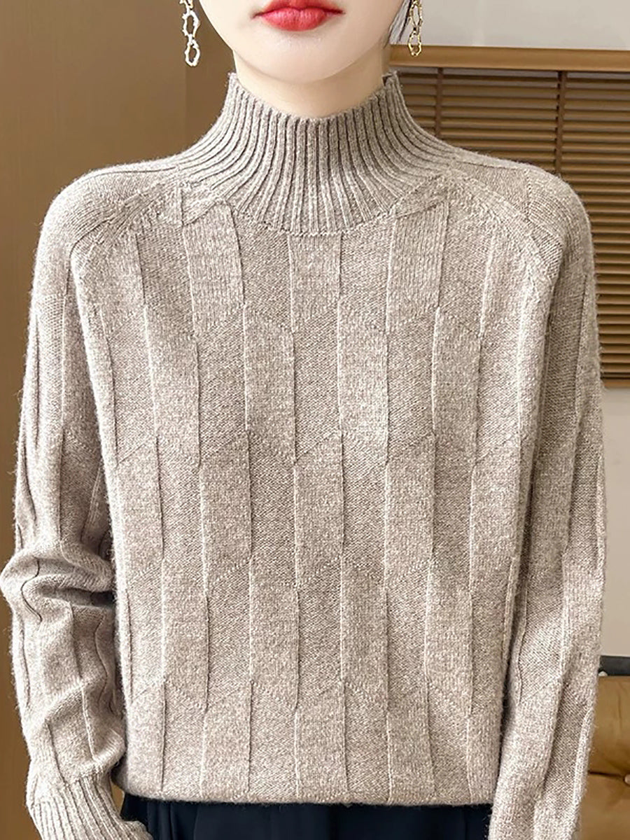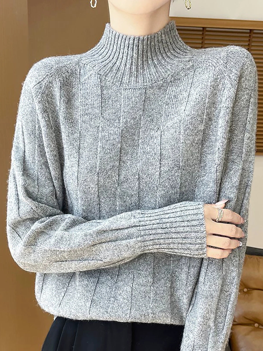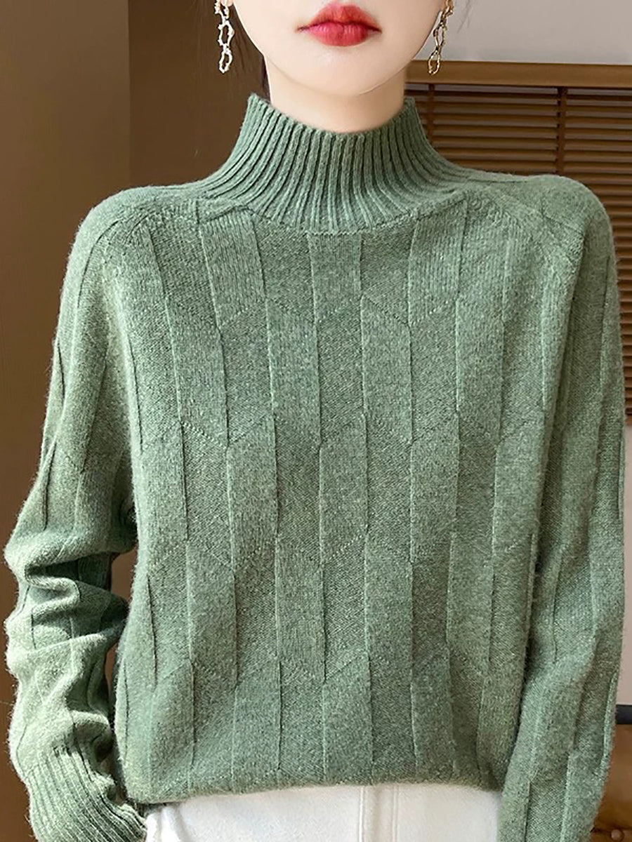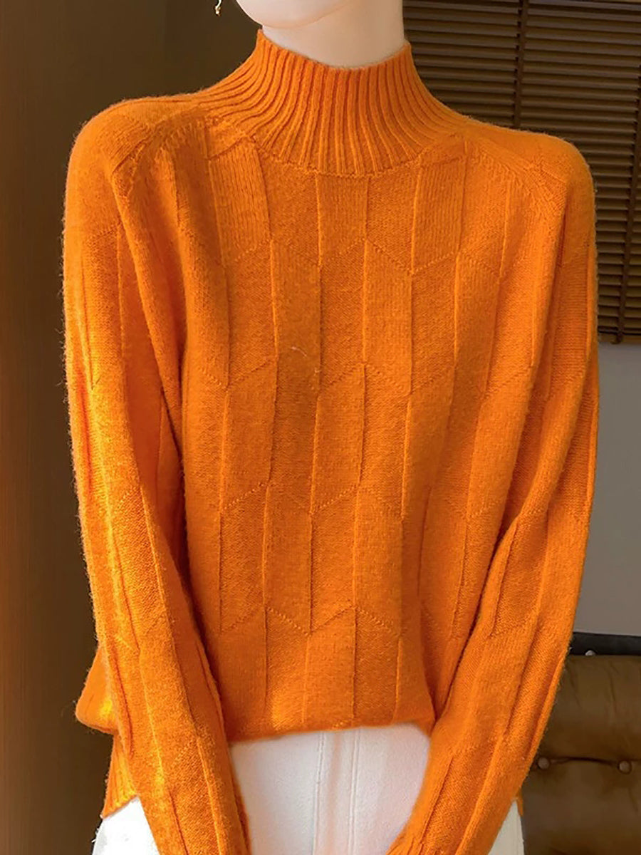 Dámský umělecký zimní svetr s polovičním rolákem v čistých barvách