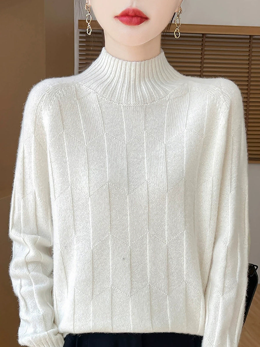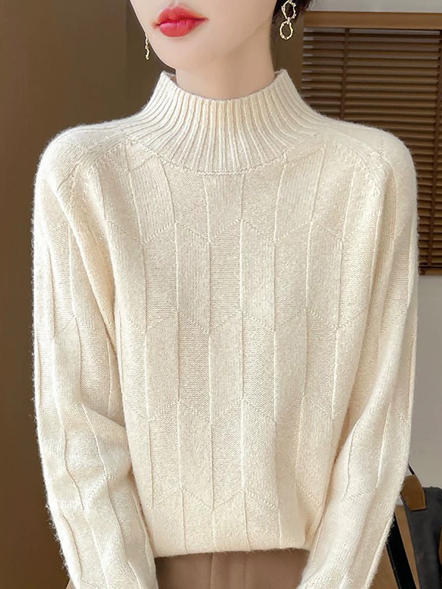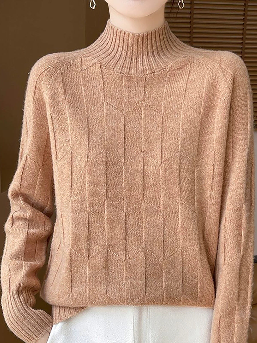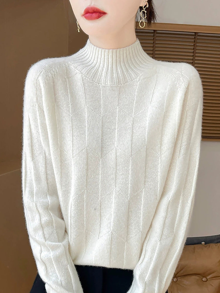 Dámský umělecký zimní svetr s polovičním rolákem v čistých barvách