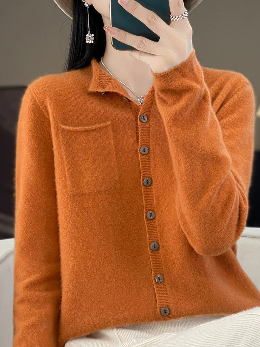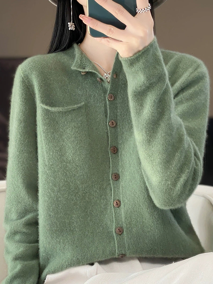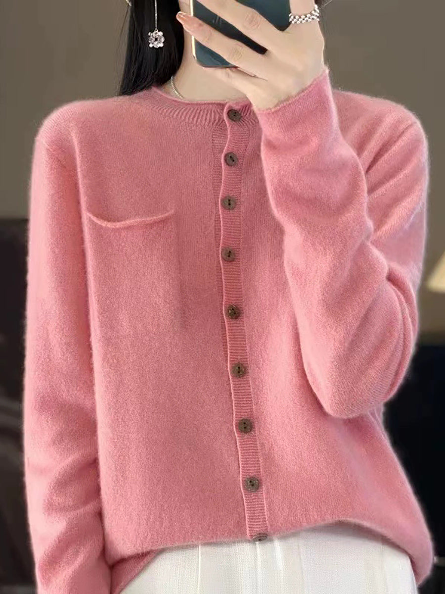 Dámský jarní umělecký kardigan v čistých barvách s výstřihem do O-neck