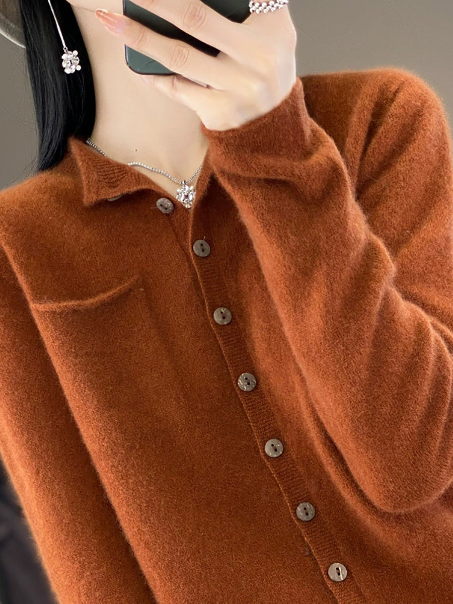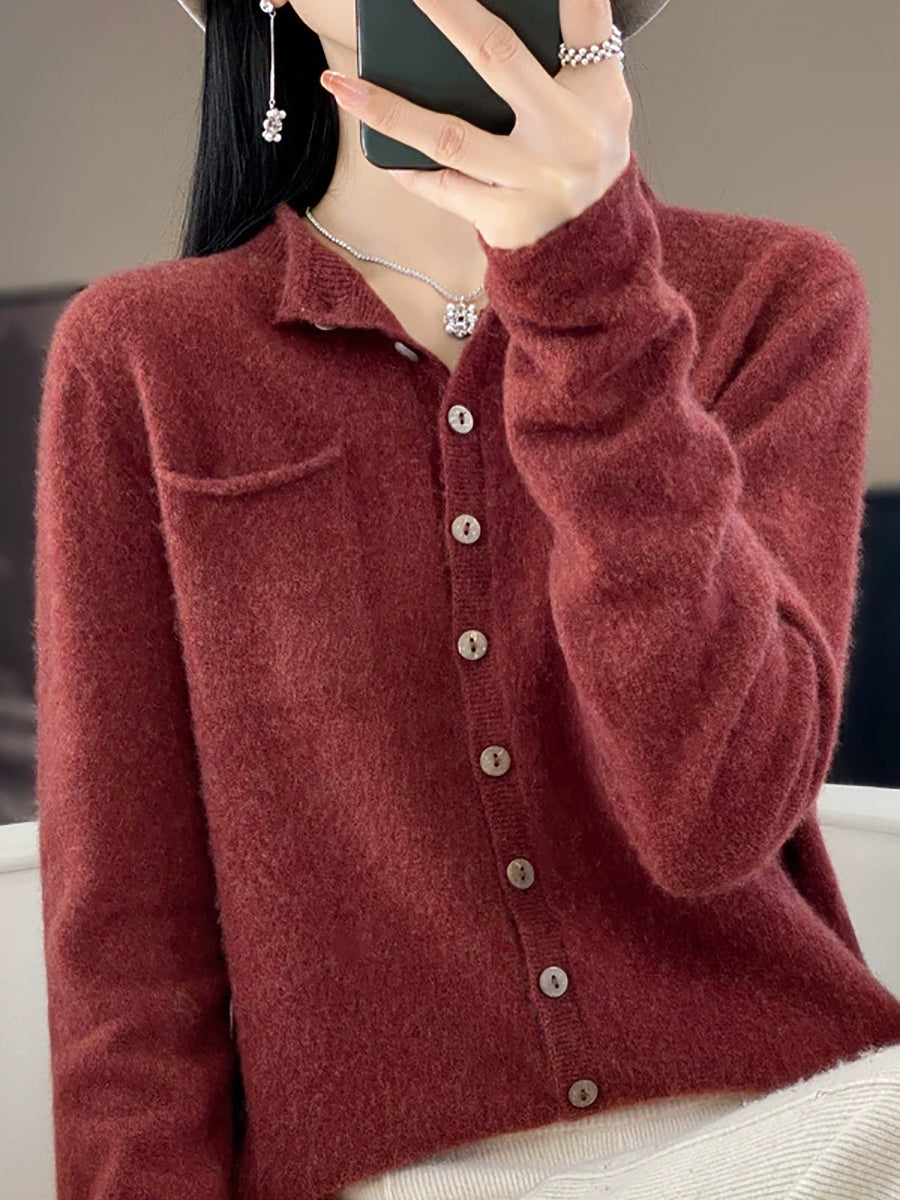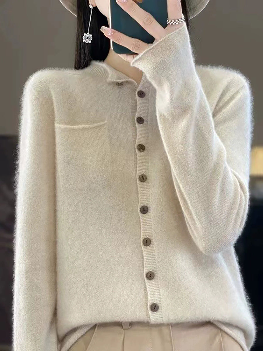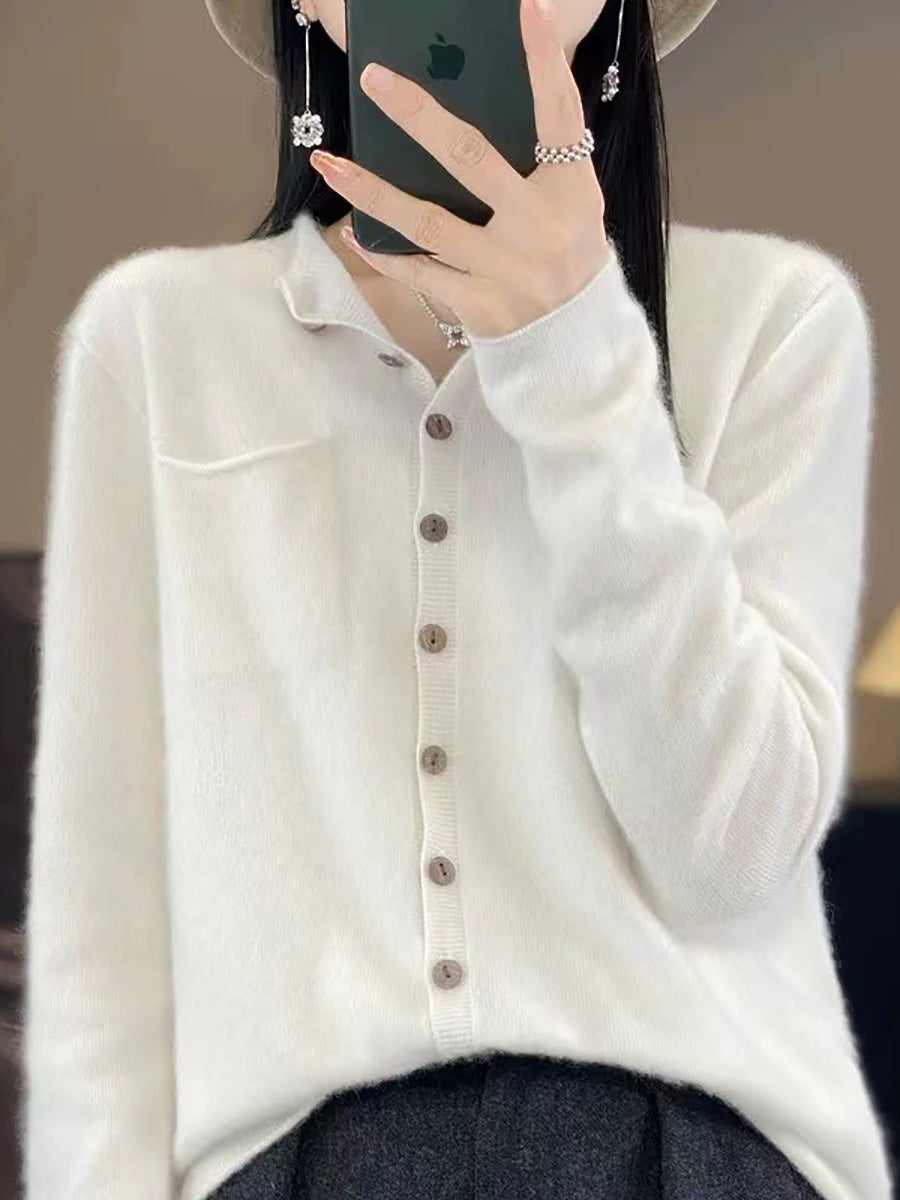Dámský jarní umělecký kardigan v čistých barvách s výstřihem do O-neck