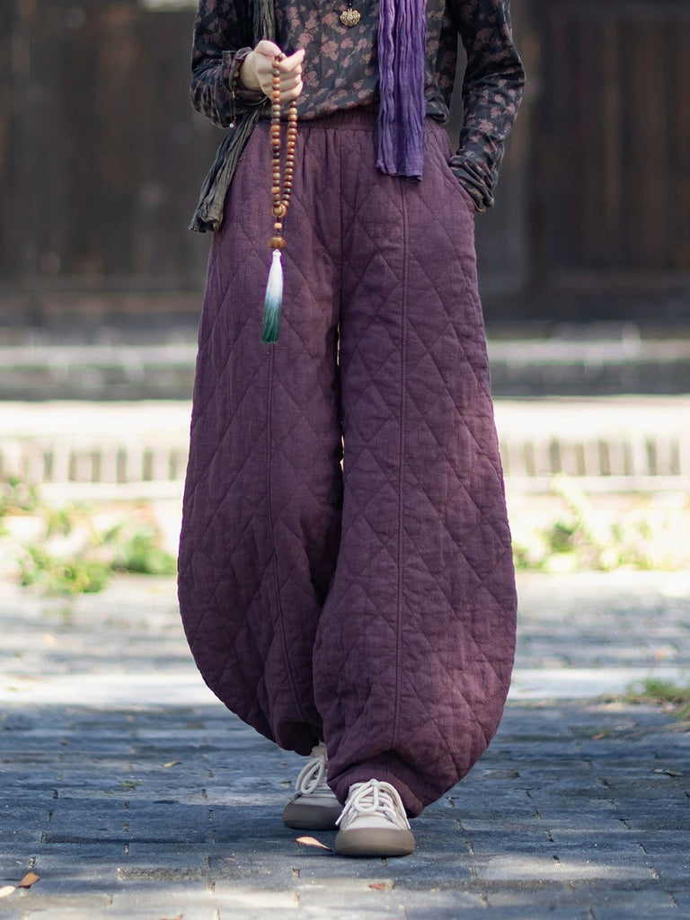 Dámské zimní ležérní čisté barevné prošívané kalhotky