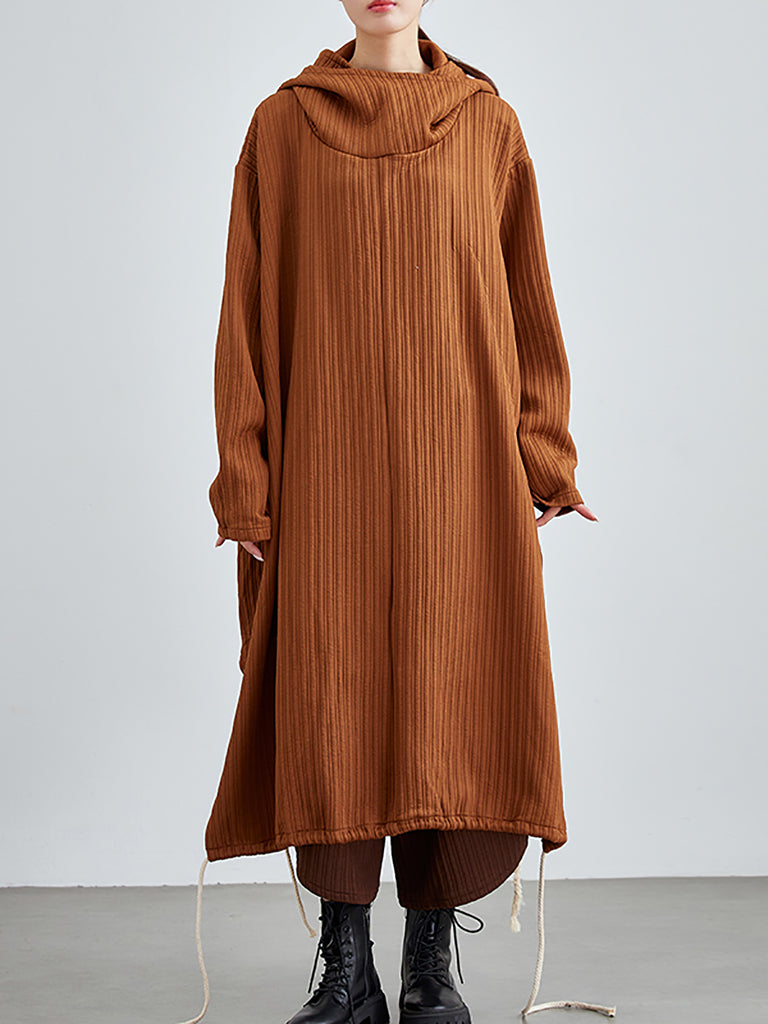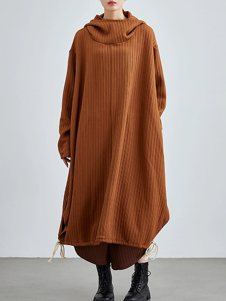 Dámské podzimní bavlněné volné šaty s kapucí v čisté barvě