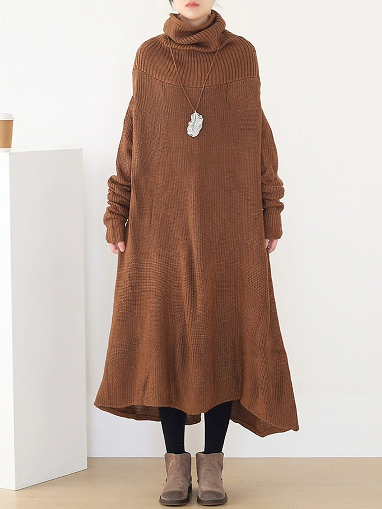 Dámské podzimní pletené volné šaty s rolákem v čisté barvě