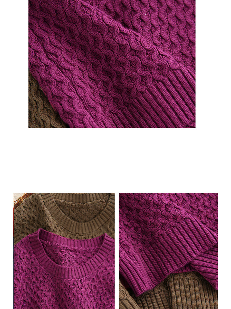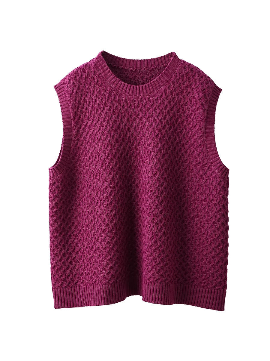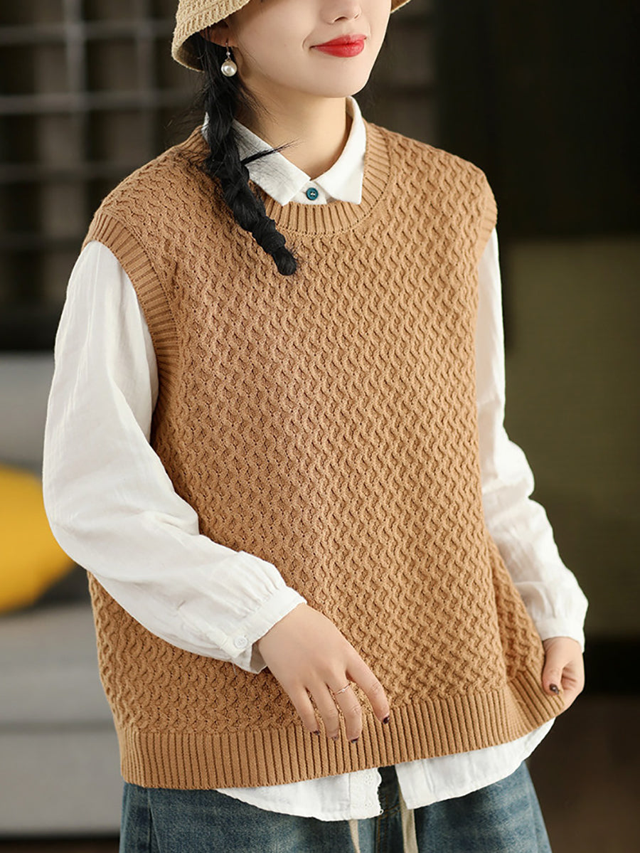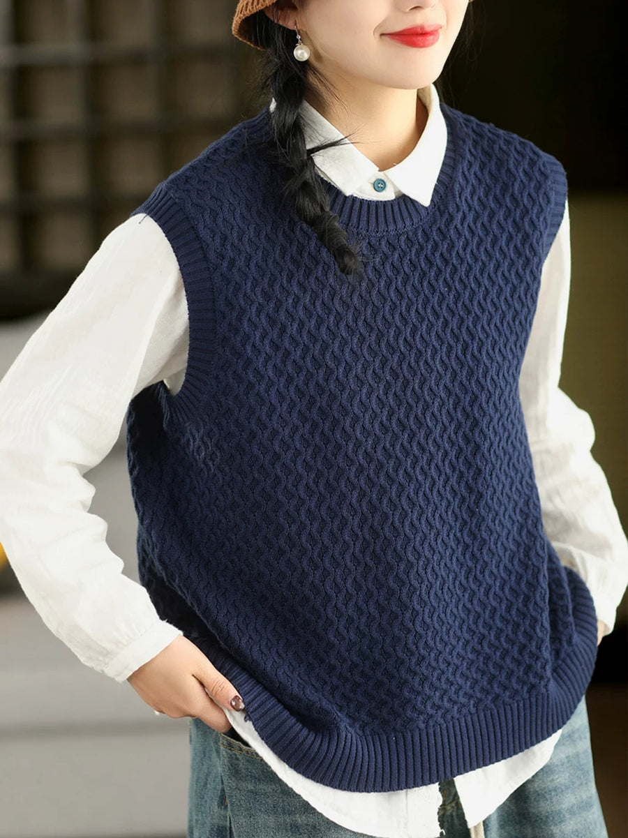Dámská jarní umělecká pletená vesta s výstřihem do O-neck v čistých barvách