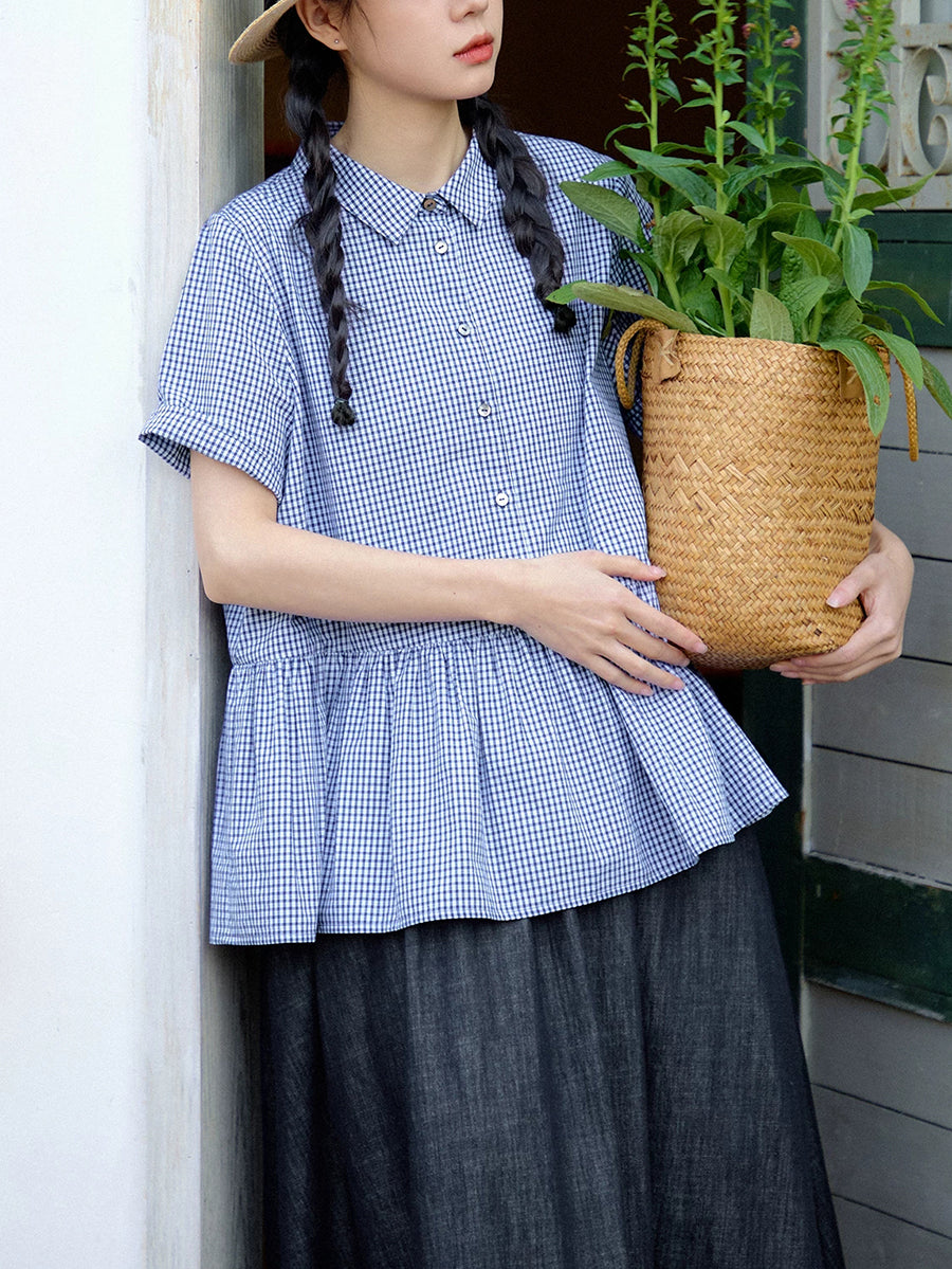 Dámská letní košile s límcem a odkládacím výstřihem, 100% bavlna