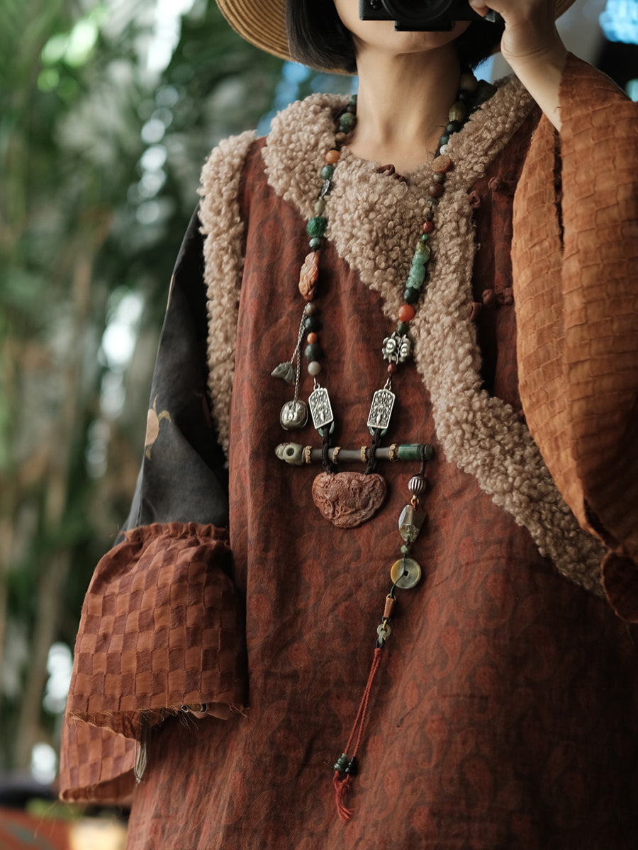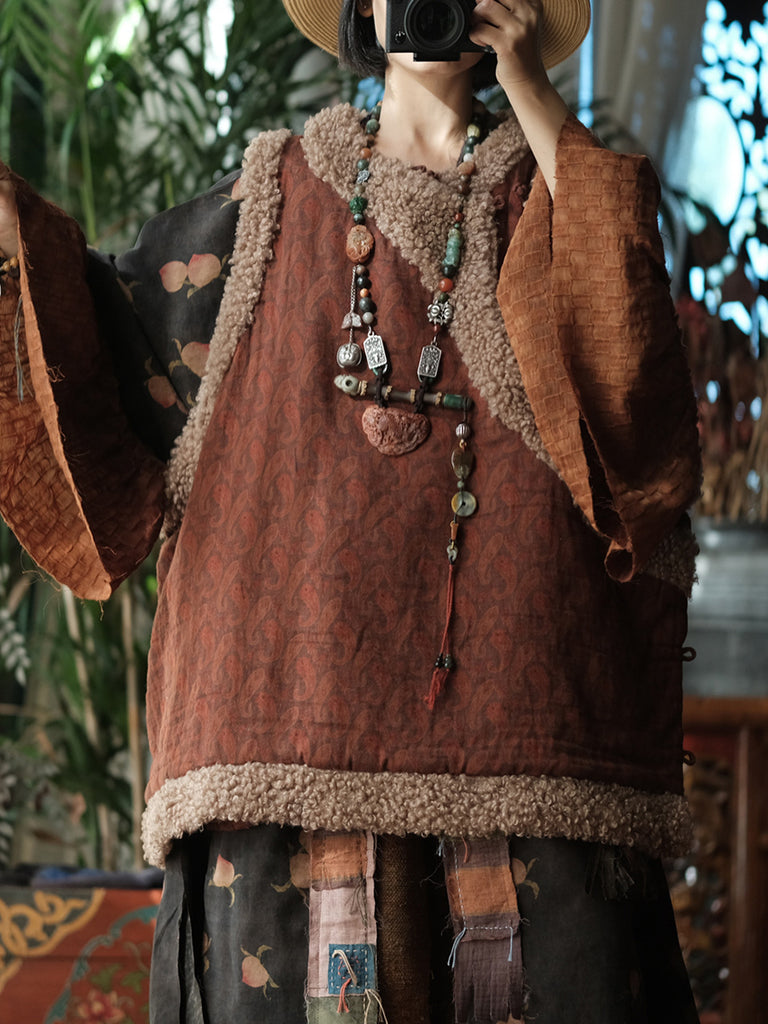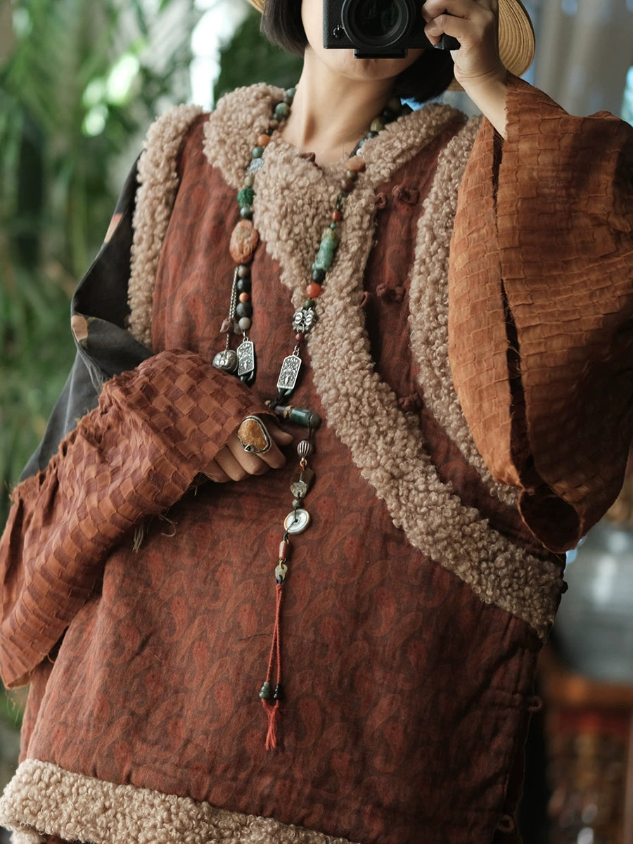 Dámská zimní vintage fleecová vesta s výstřihem do O-neck
