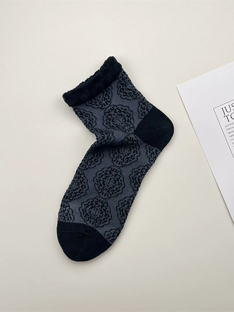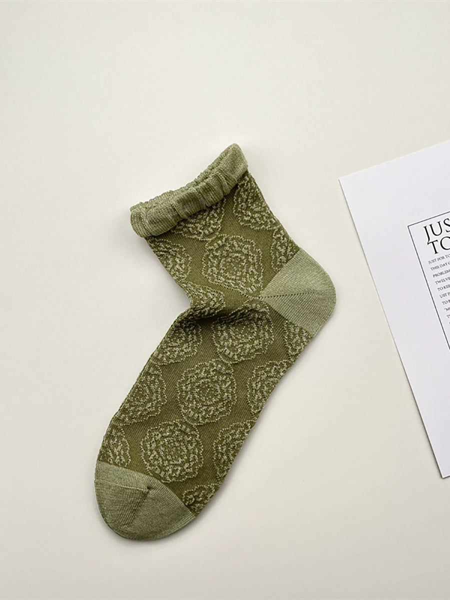 4 páry dámských letních vintage květinových ponožek