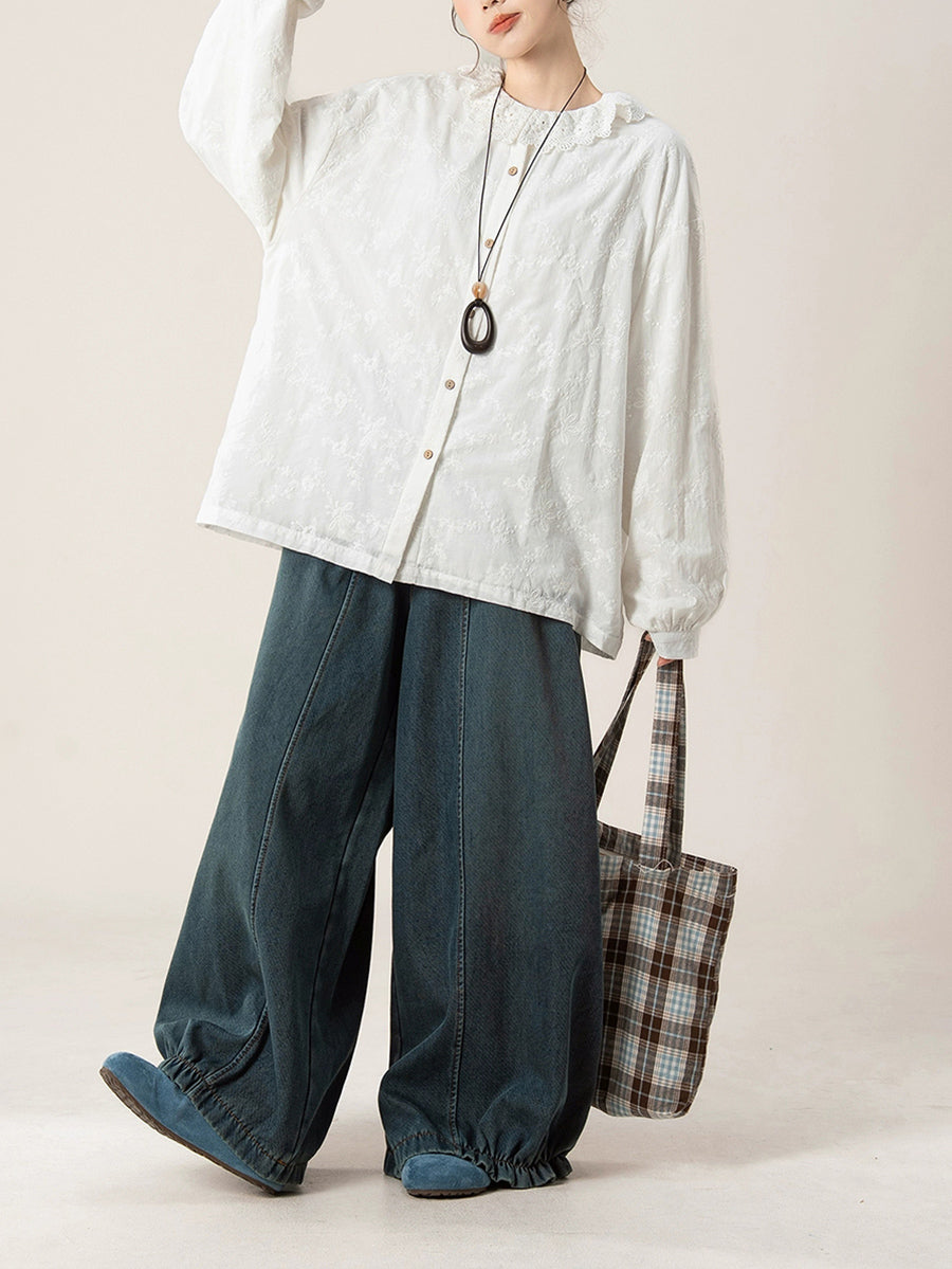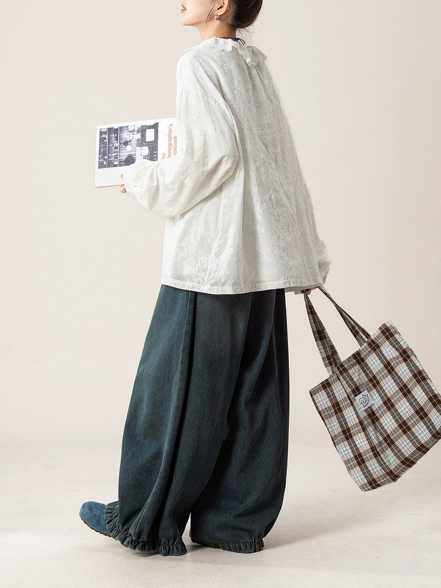 Dámská umělecká podzimní výšivka s odkládacím límcem