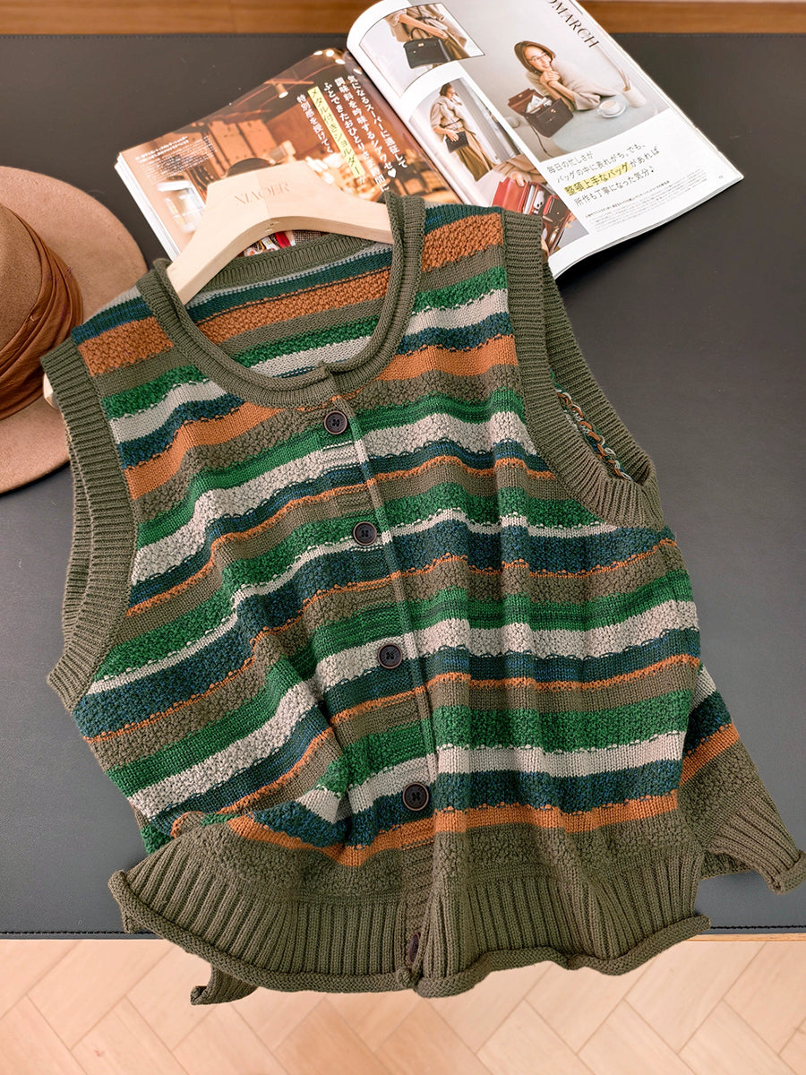 Dámská podzimní vesta s uměleckými pruhy a výstřihem do O-neck