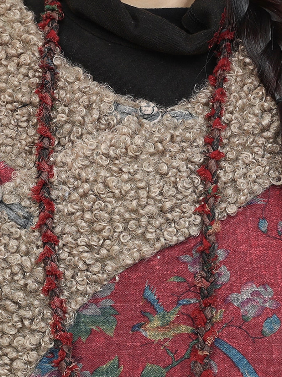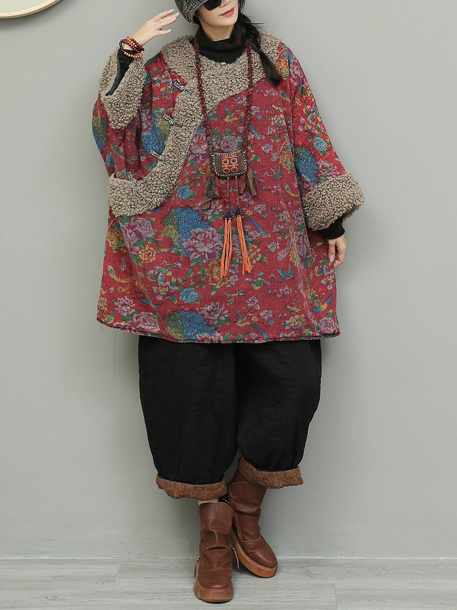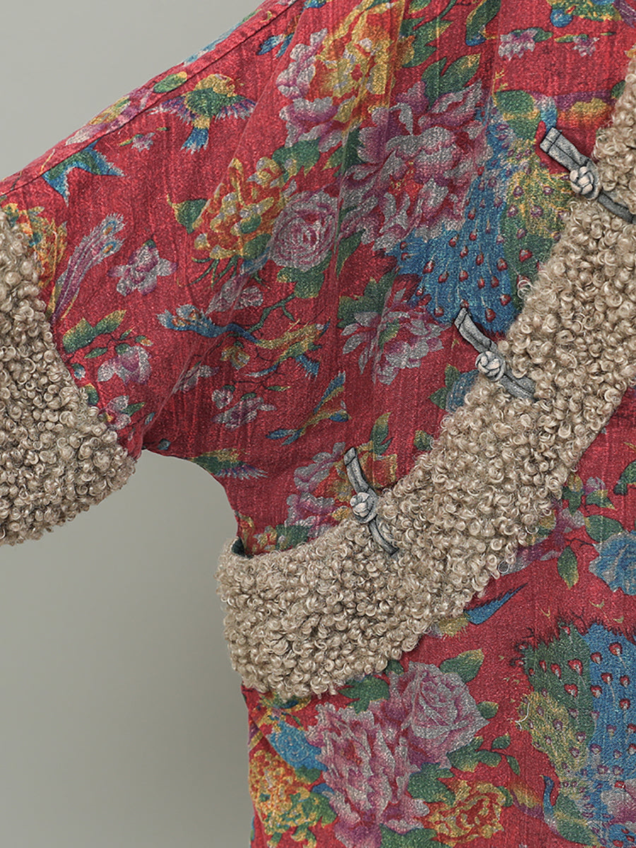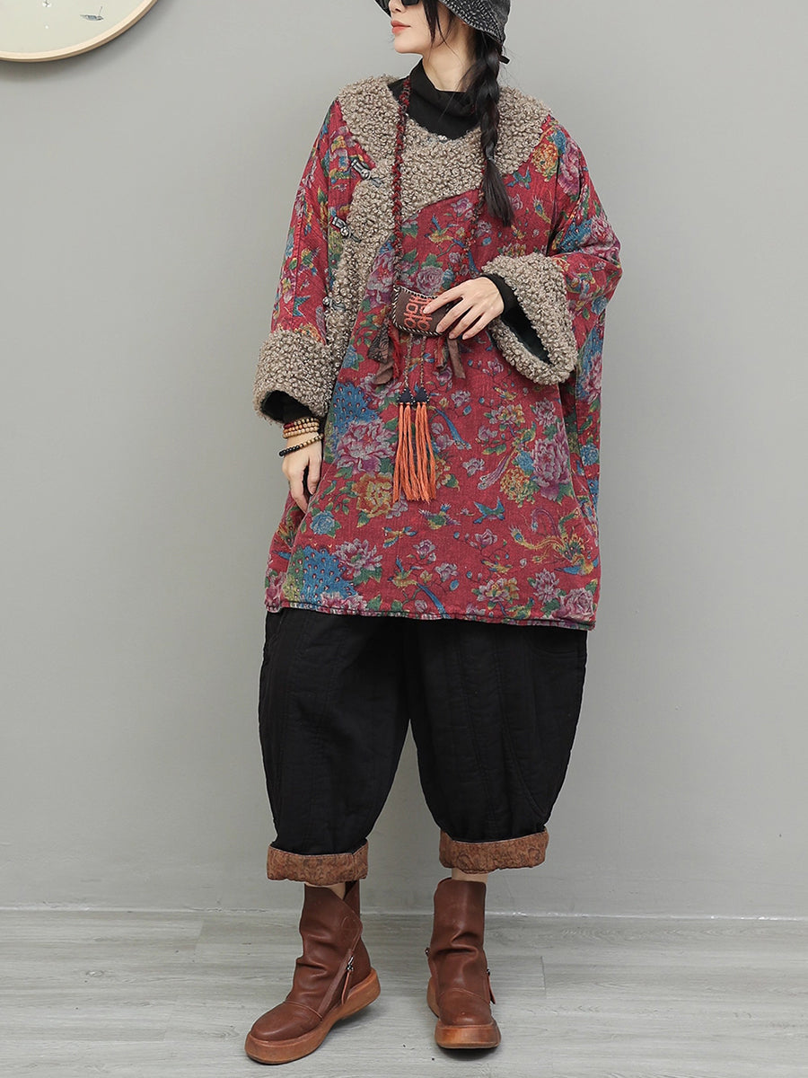 Dámský retro květinový fleecový bavlněný kabát s výstřihem do O-neck