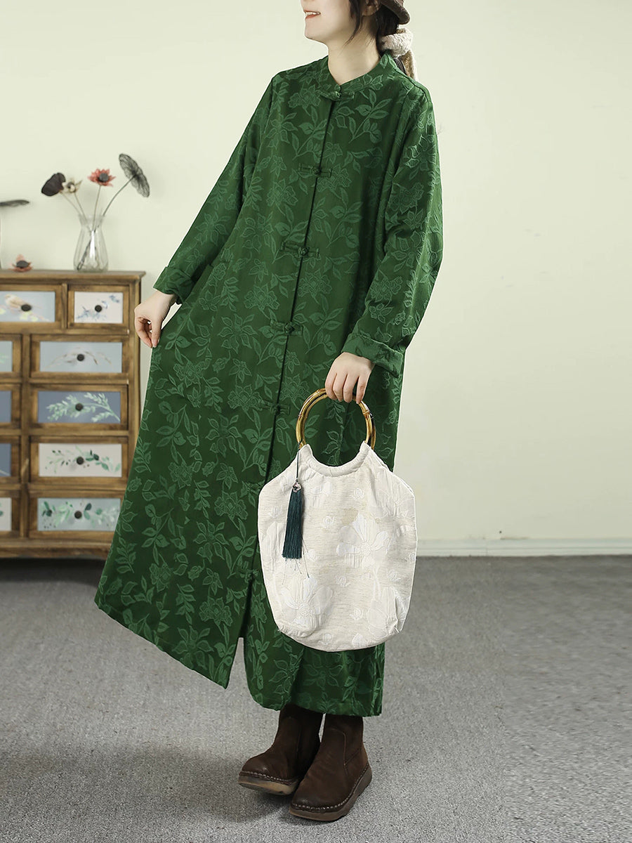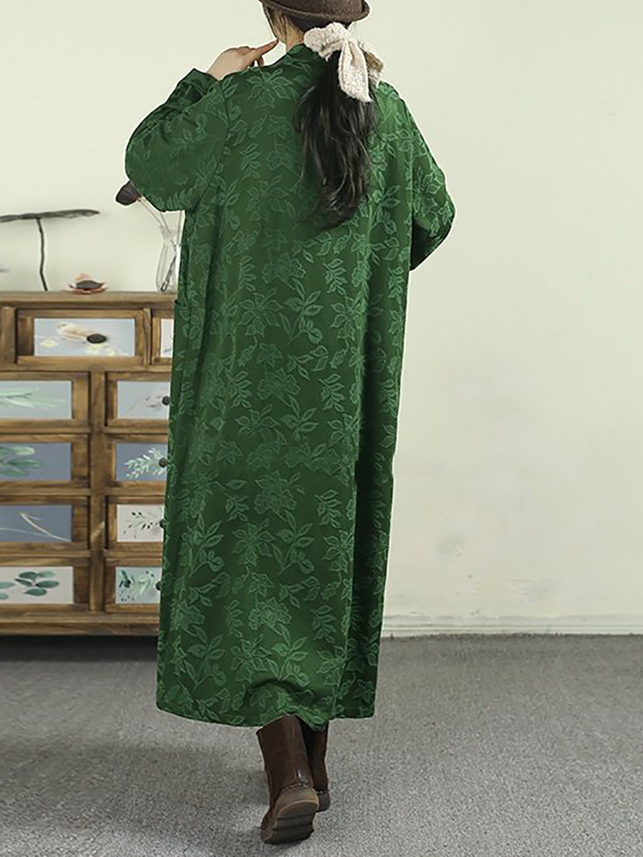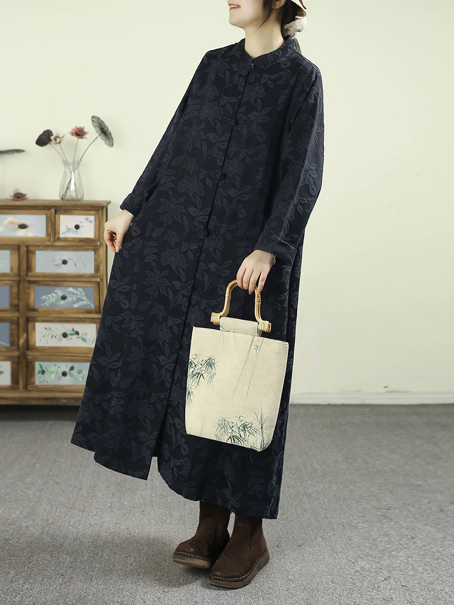 Dámské jarní umělecké květinové žakárové šaty se stojáčkem