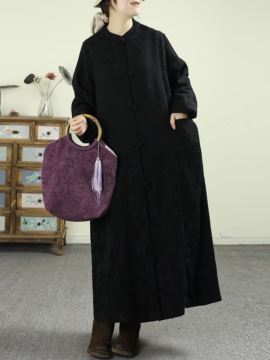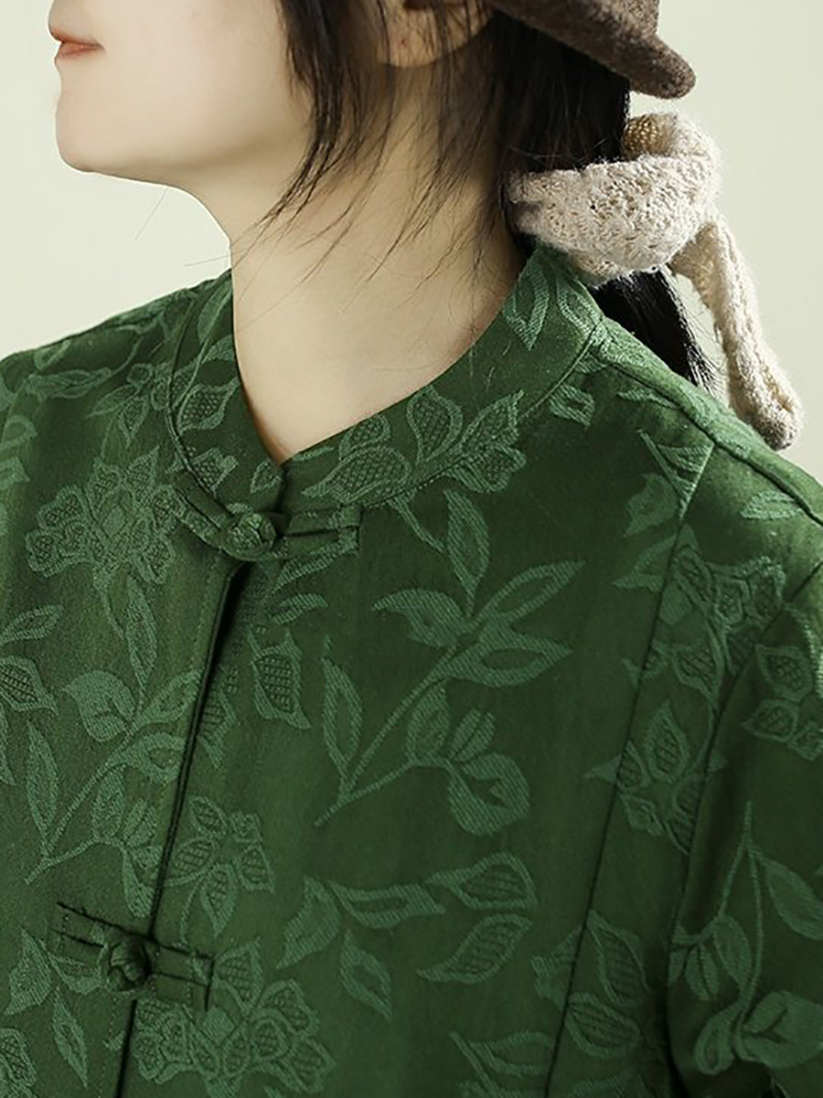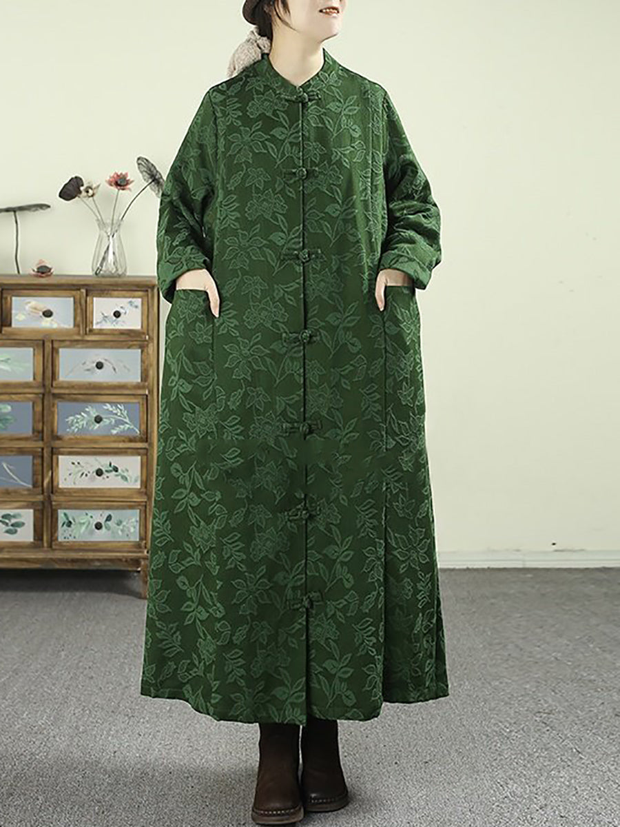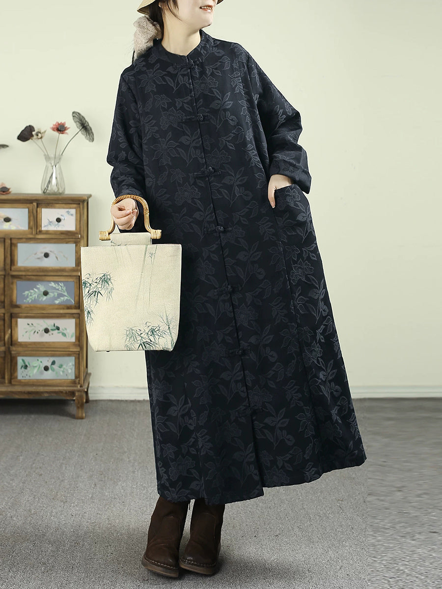 Dámské jarní umělecké květinové žakárové šaty se stojáčkem