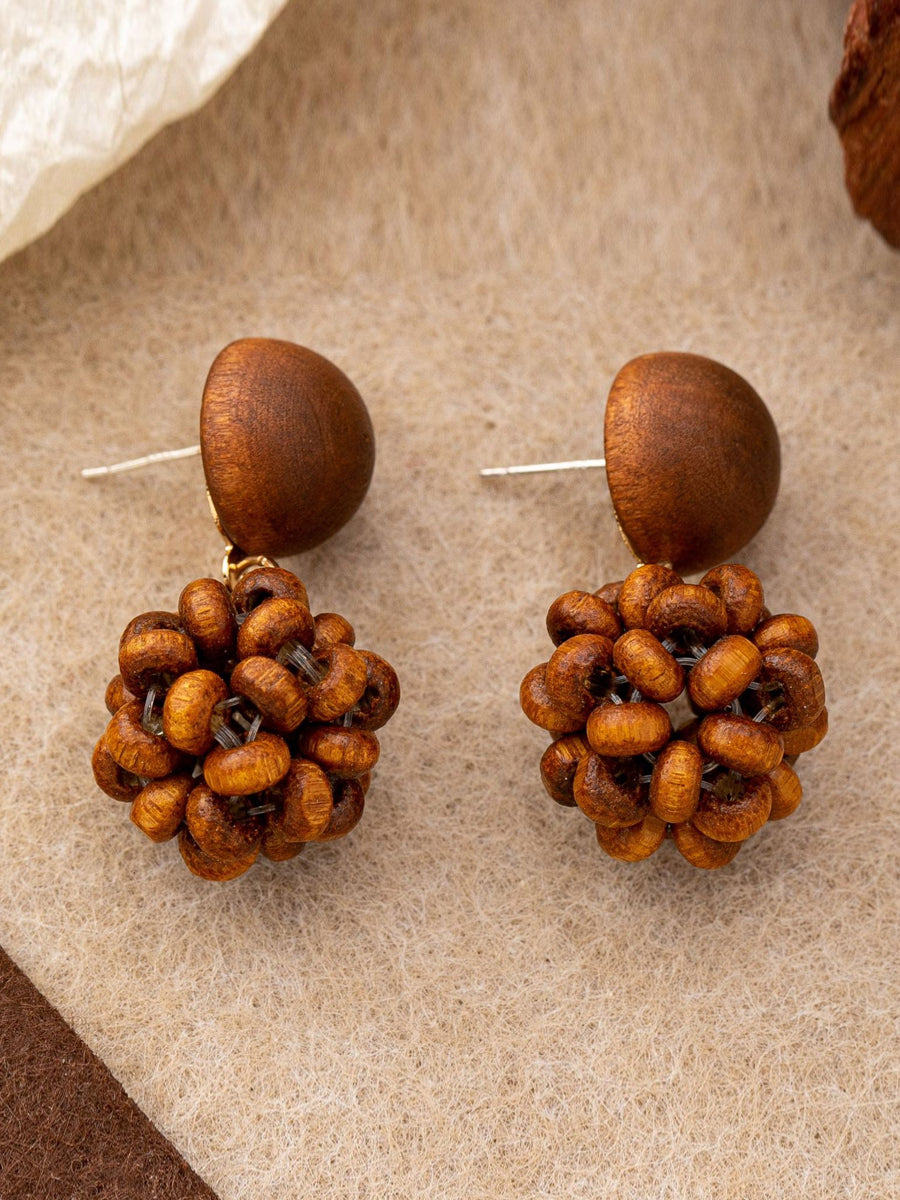 Dámské vintage dřevěné náušnice s borovou šiškou S925Sliver