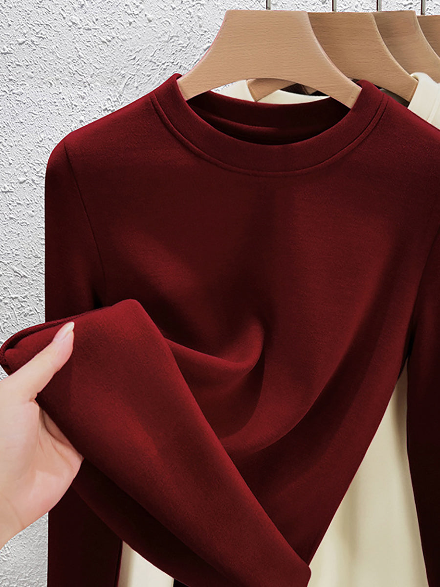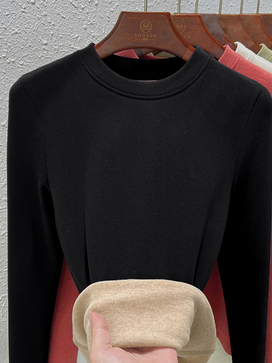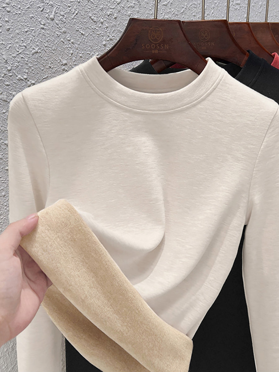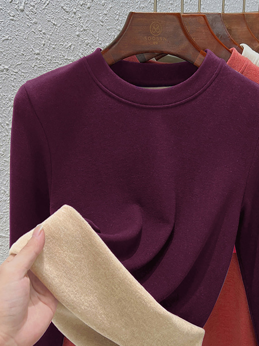 Dámská zimní umělecká čistě barevná halenka s výstřihem do O-neck