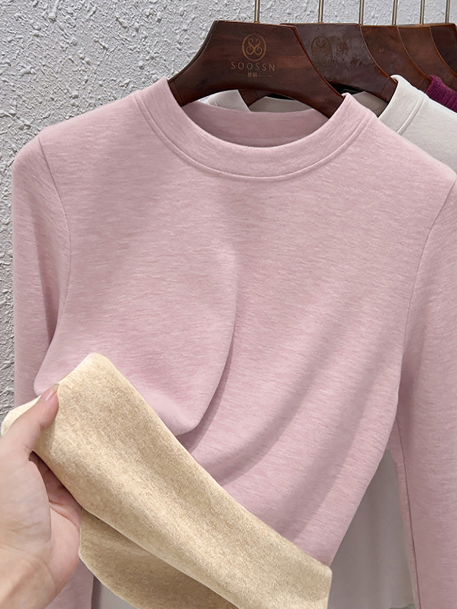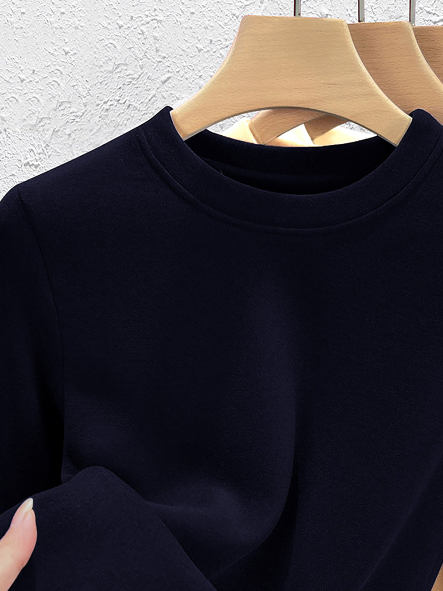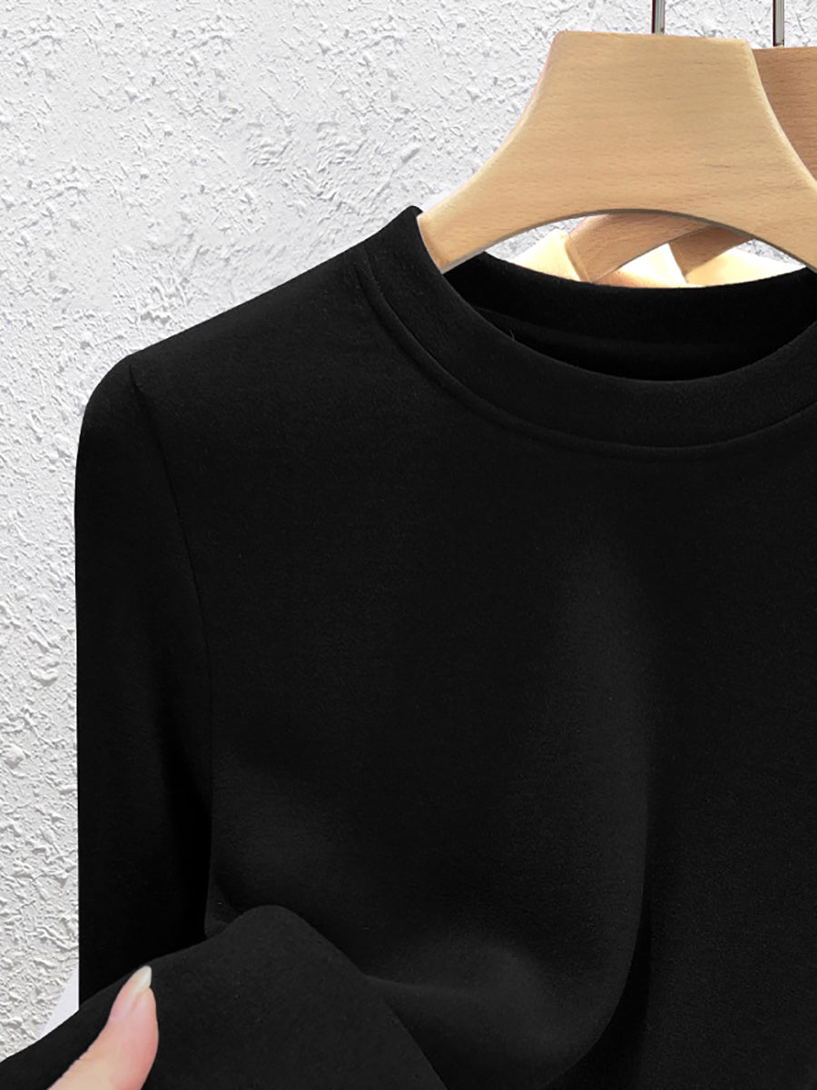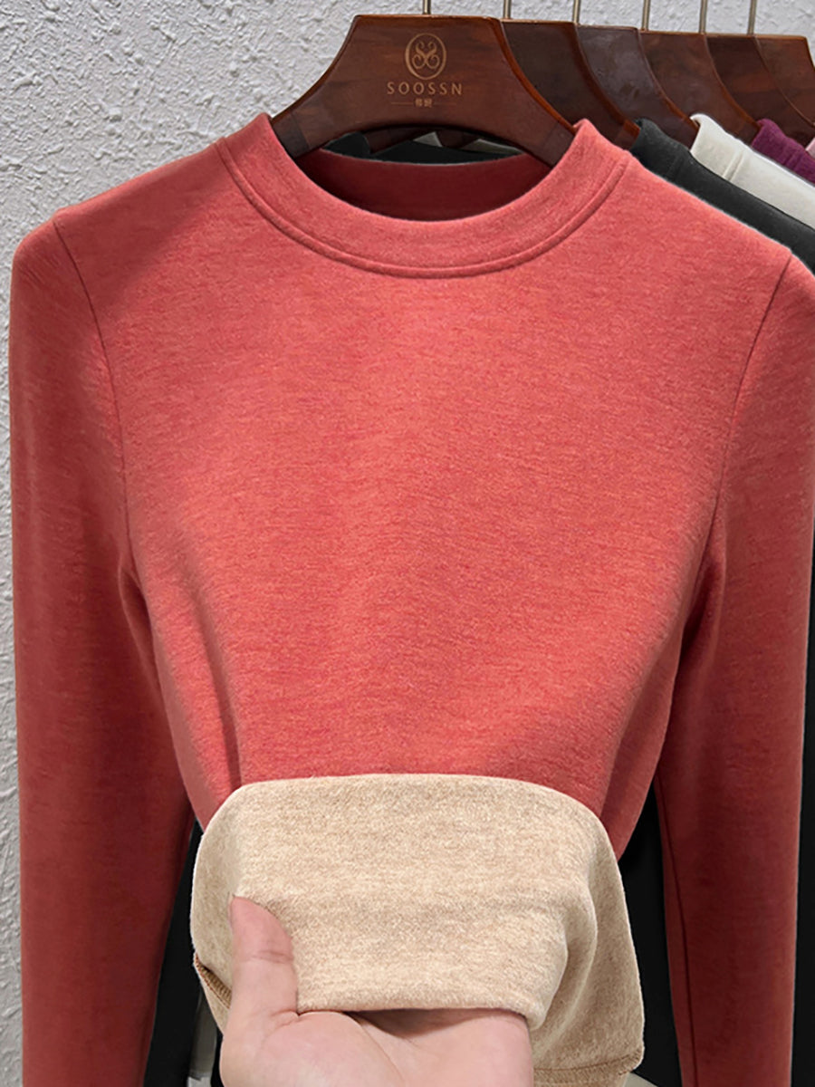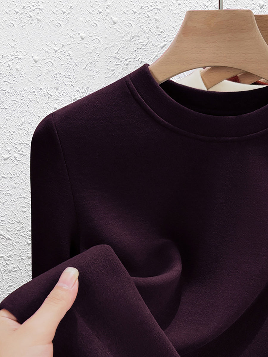 Dámská zimní umělecká čistě barevná halenka s výstřihem do O-neck