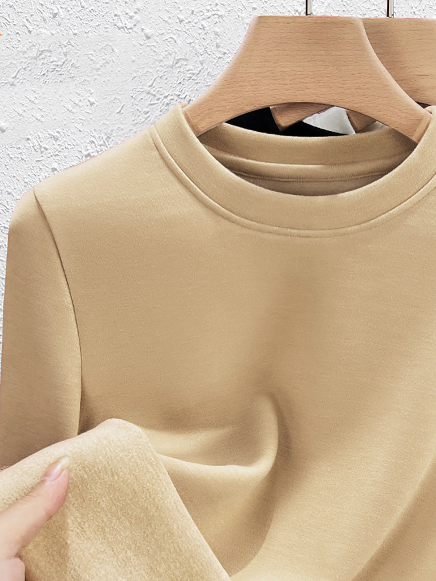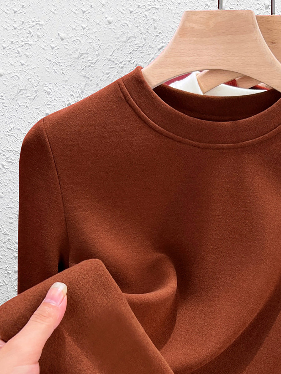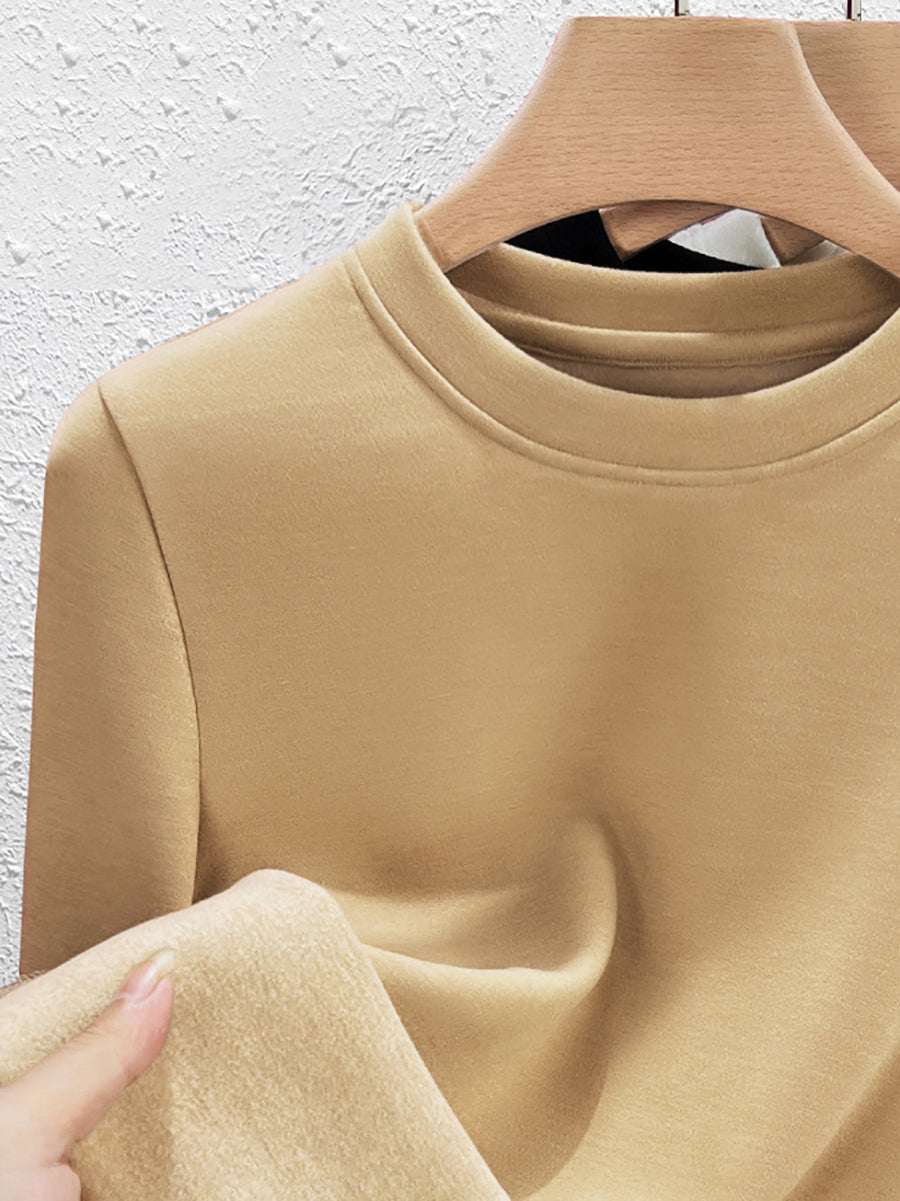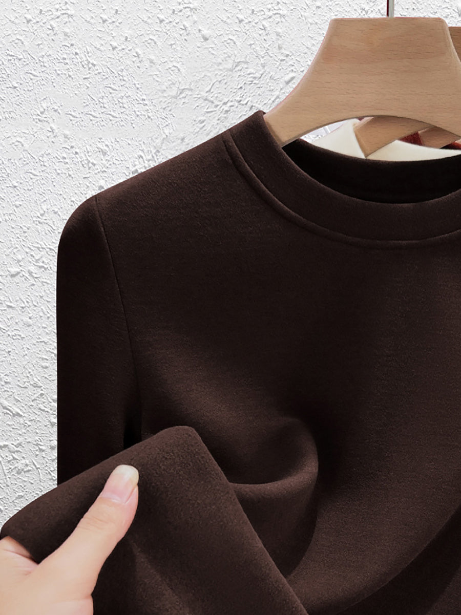 Dámská zimní umělecká čistě barevná halenka s výstřihem do O-neck