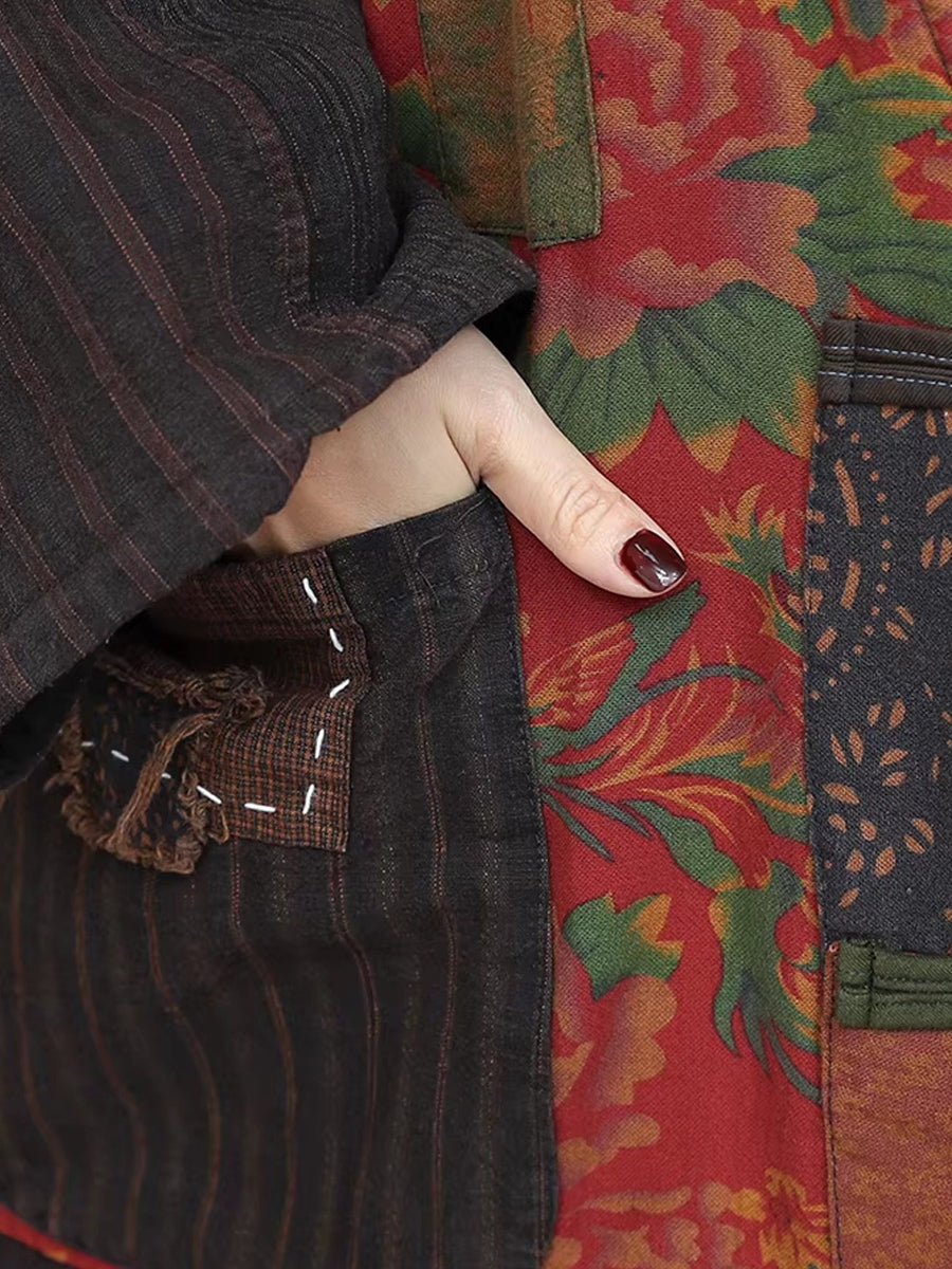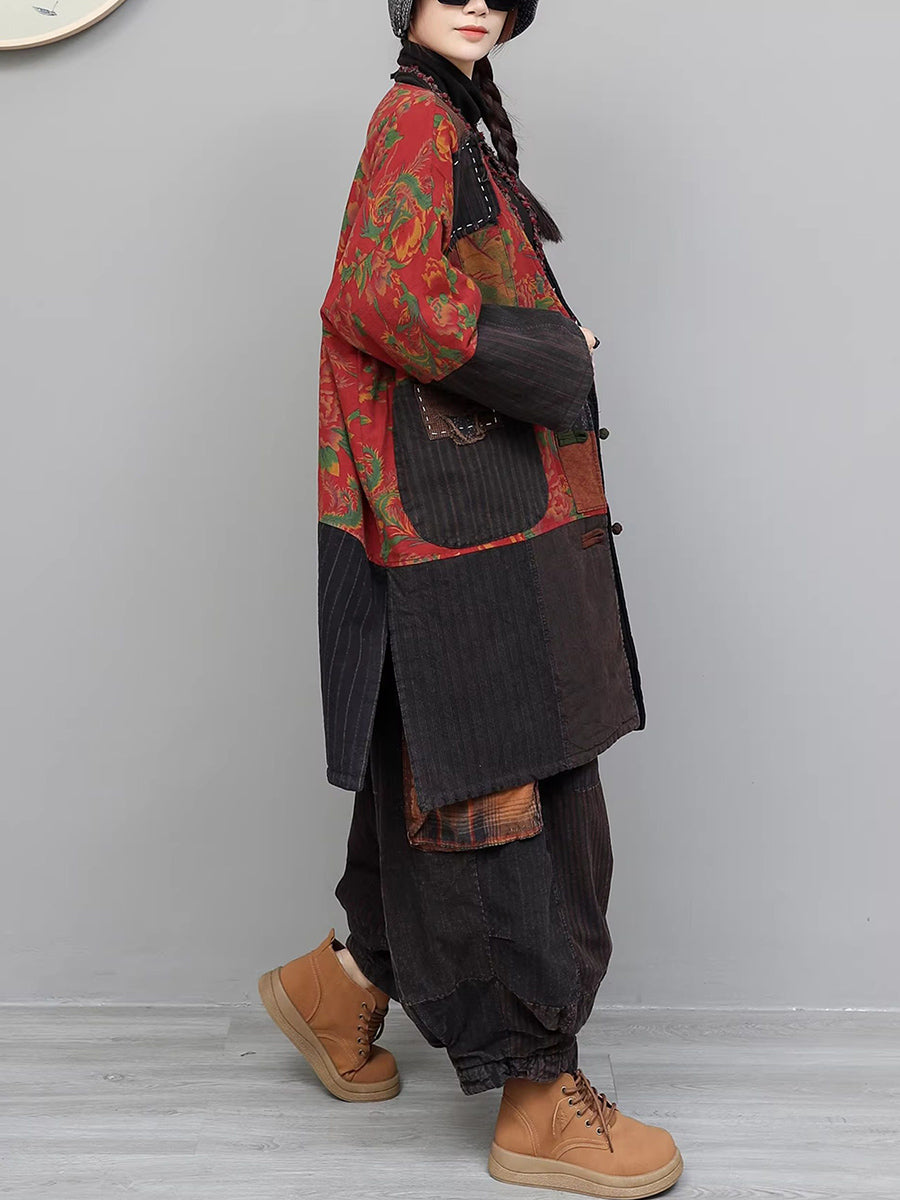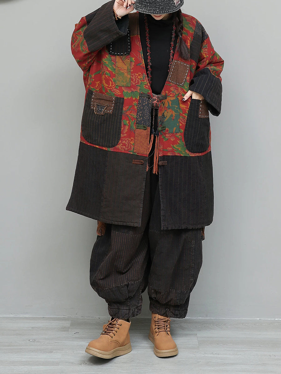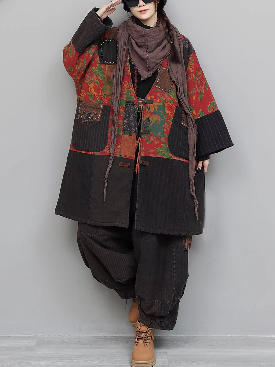 Dámské zimní etnické nášivky s výstřihem do V a prošívanými obleky