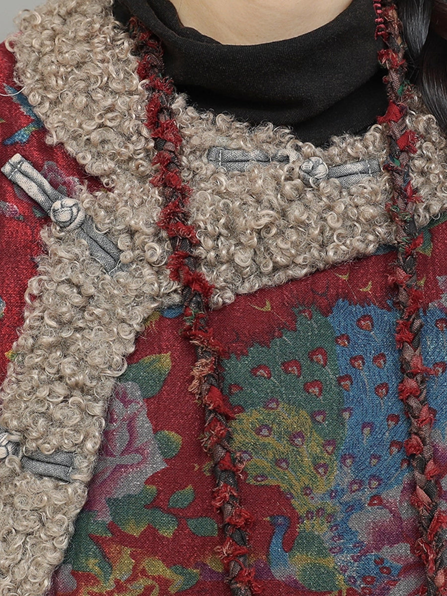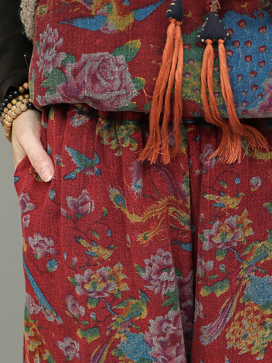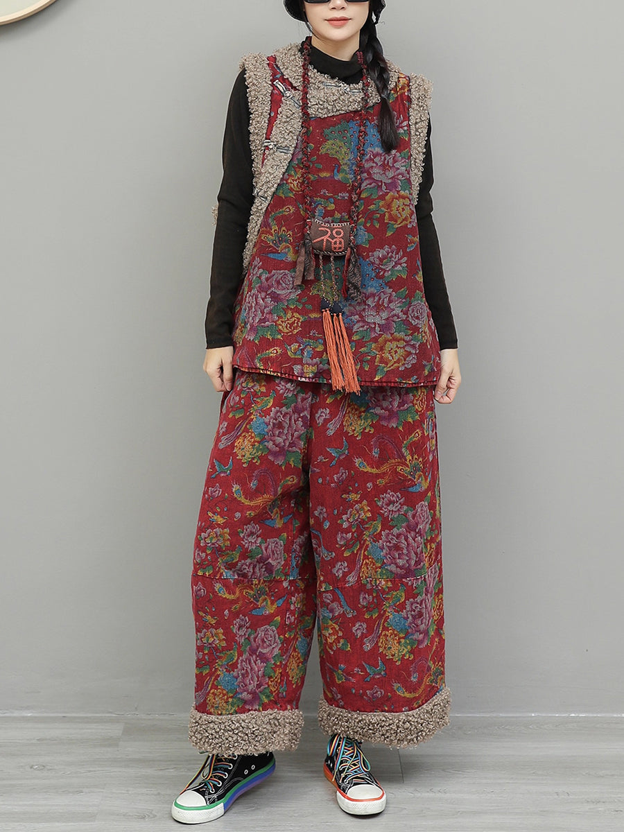 Dámské zimní retro květinové fleecové obleky s výstřihem do O-neck a prošívanou podšívkou