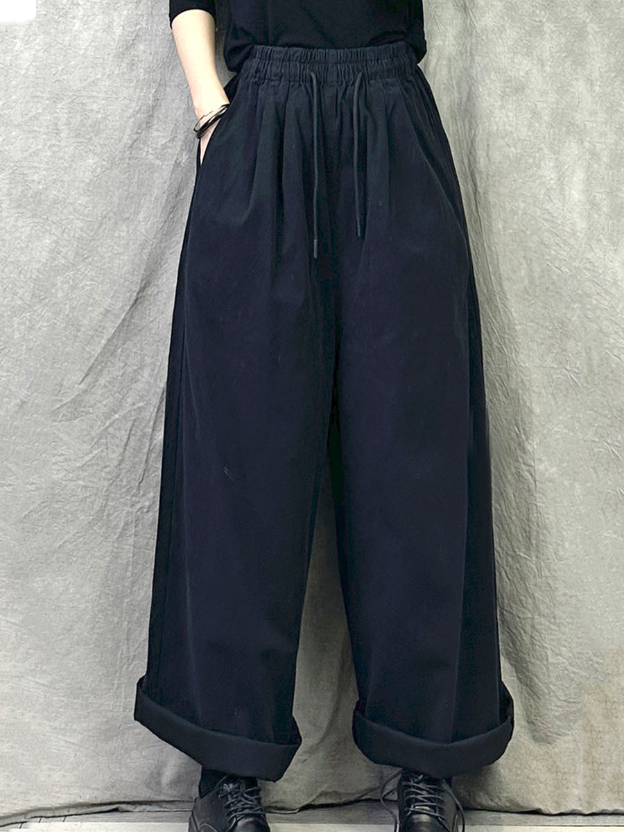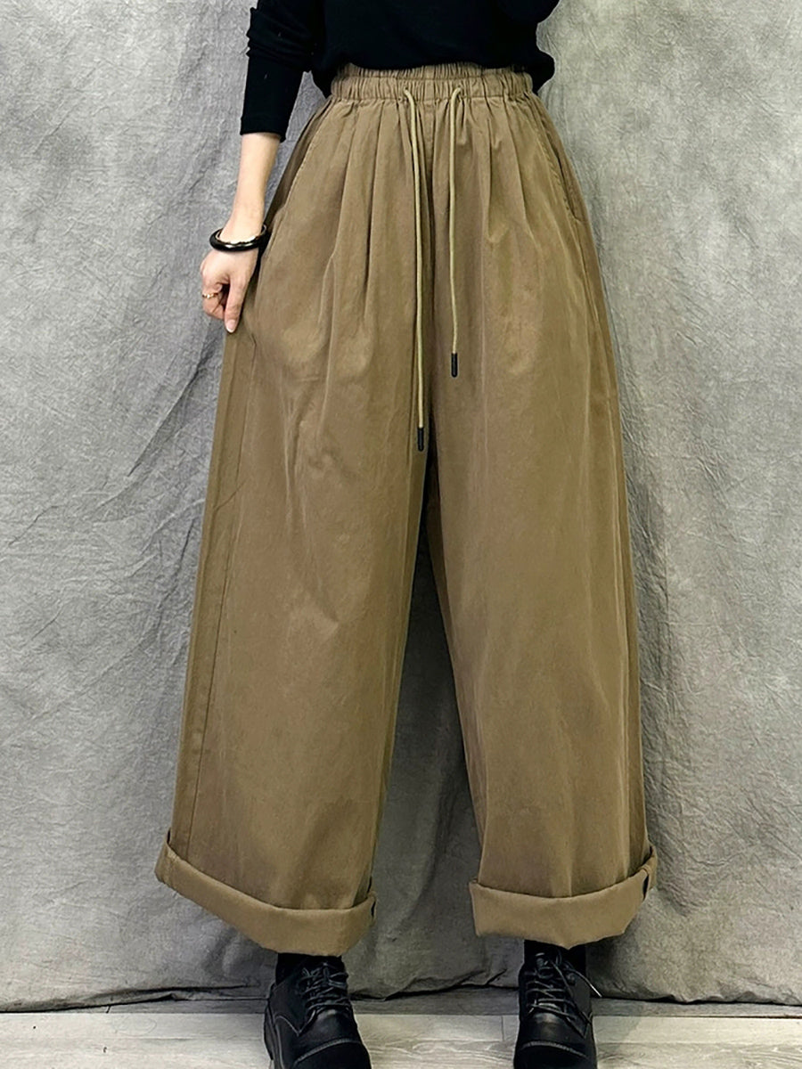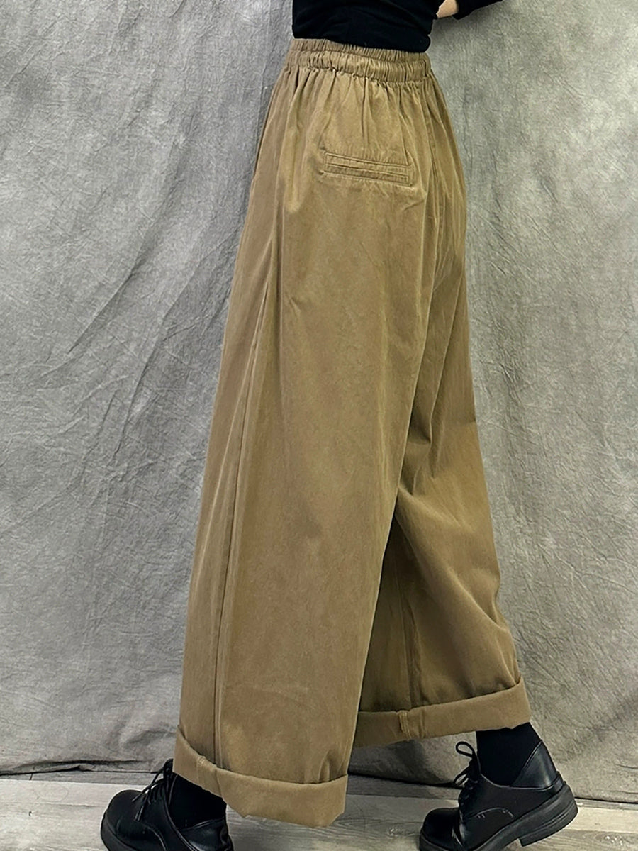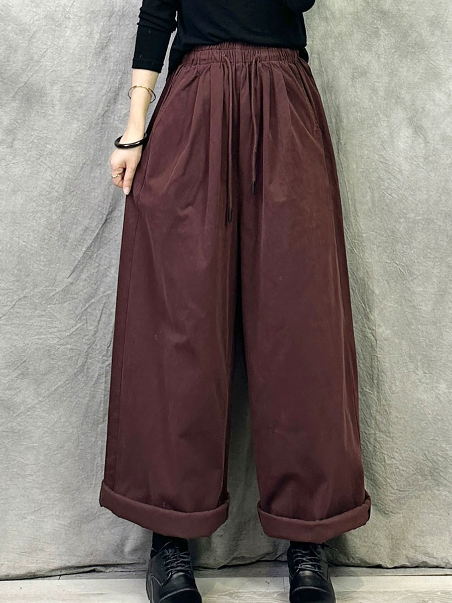 Dámské zimní retro kalhoty s širokými nohavicemi v čistých barvách