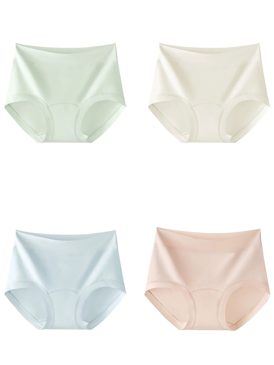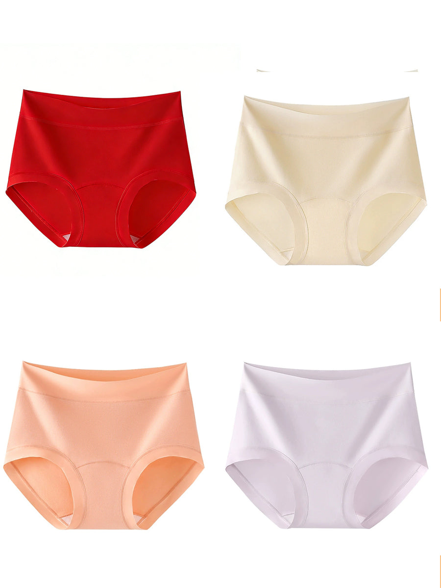 4 Pieces Women Artsy Pure Color High Waist Underwear