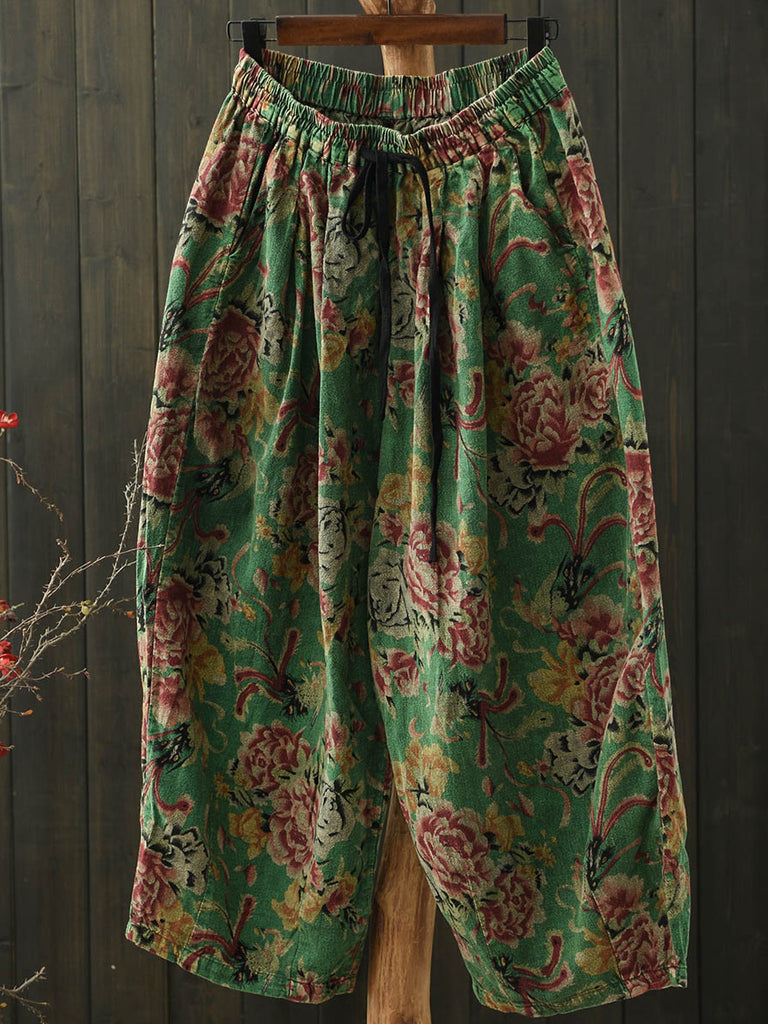 Plus Size Women Summer Retro Flower Patchwork Harem Pants