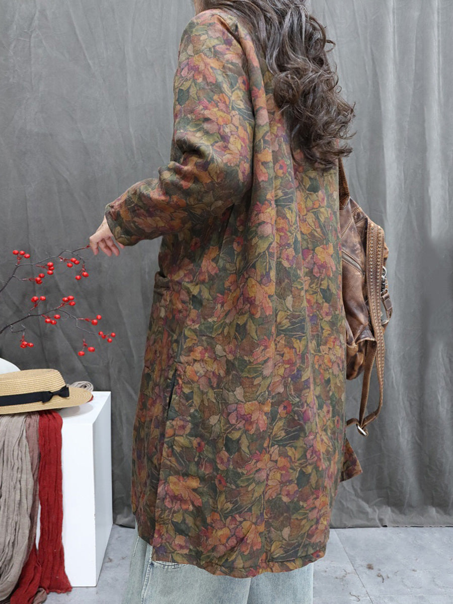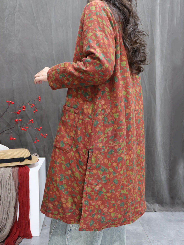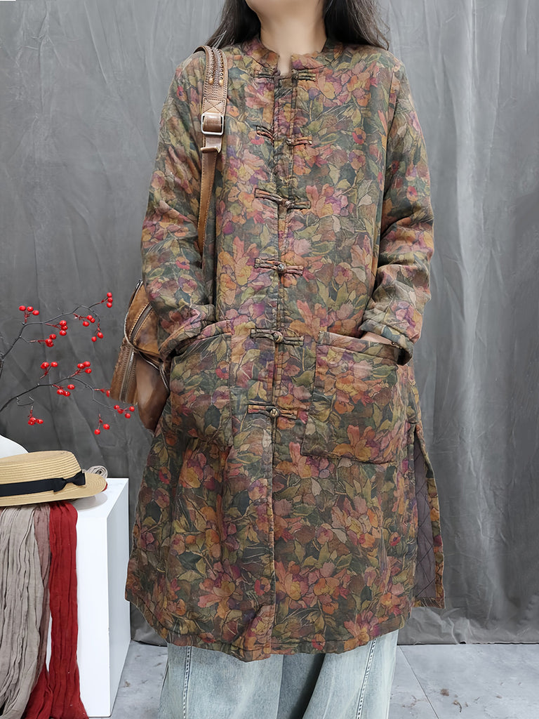 Women Winter Flower Stand Collar Cotton Padded Jacket