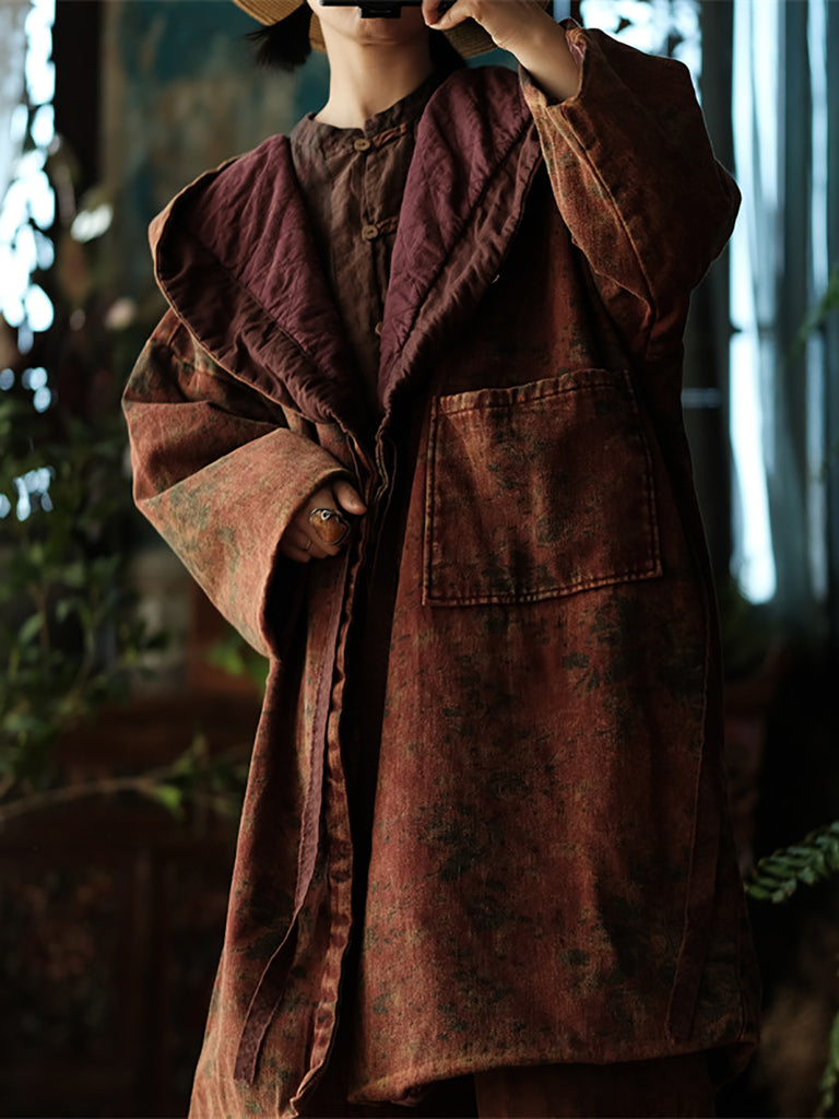 Women Winter Artsy Floral Fleece-lined 100%Cotton Shirt