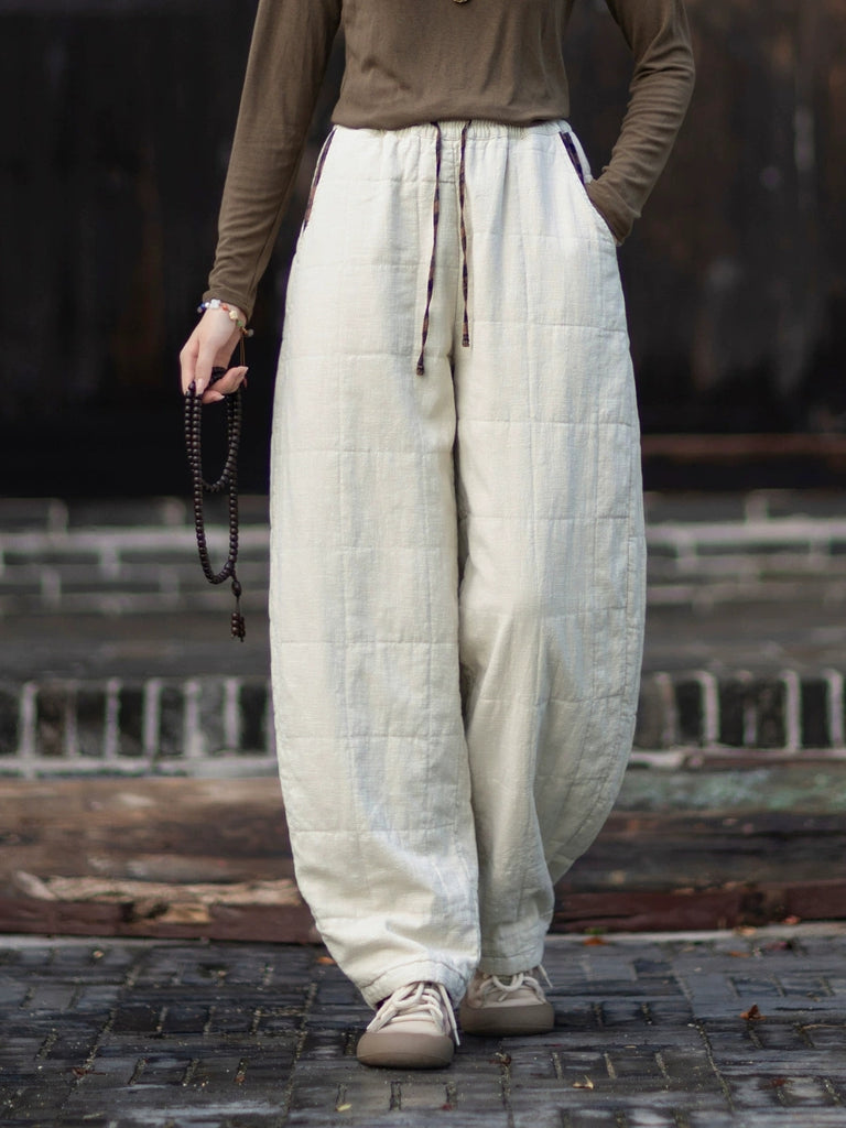 Women Vintage Pure Color Ramie Padde Harem Pants