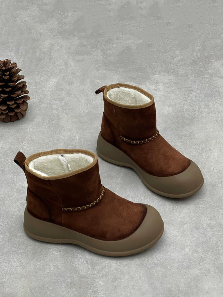 Women Vintage Winter Leather Fleece-lined Flat Boots