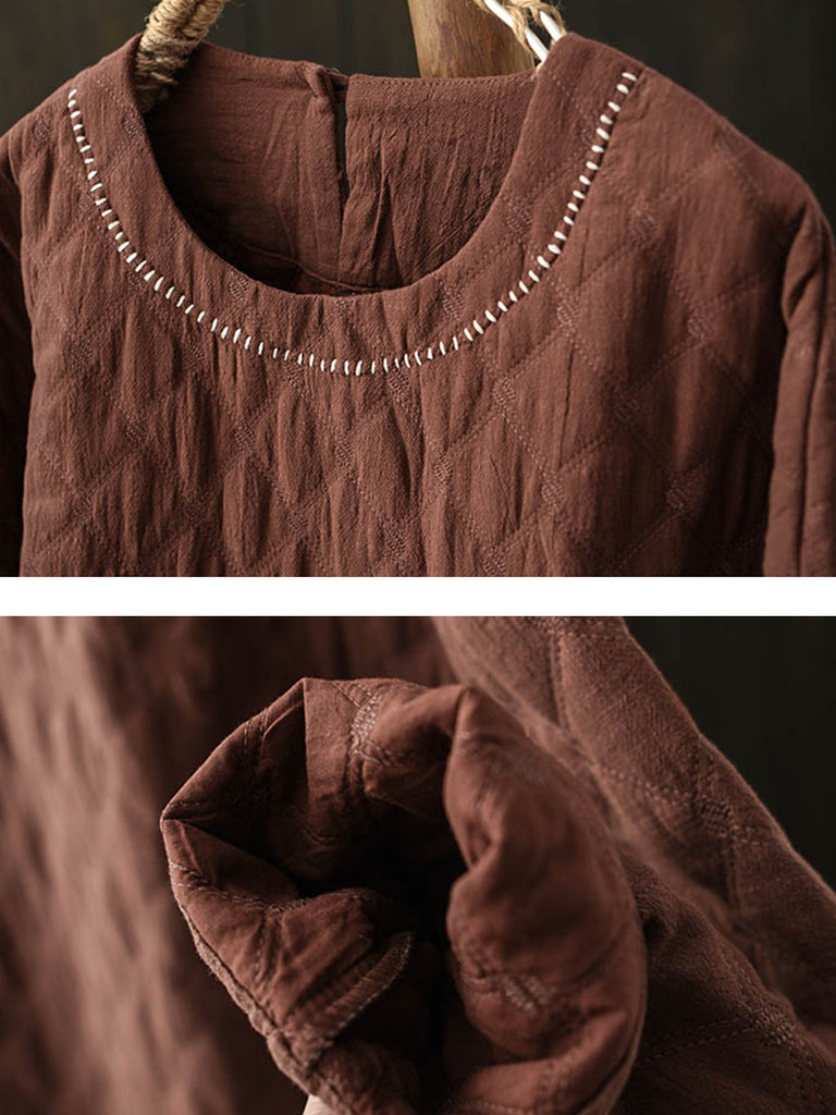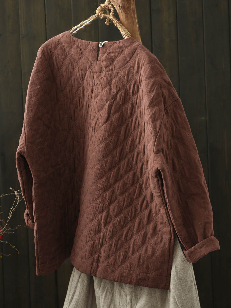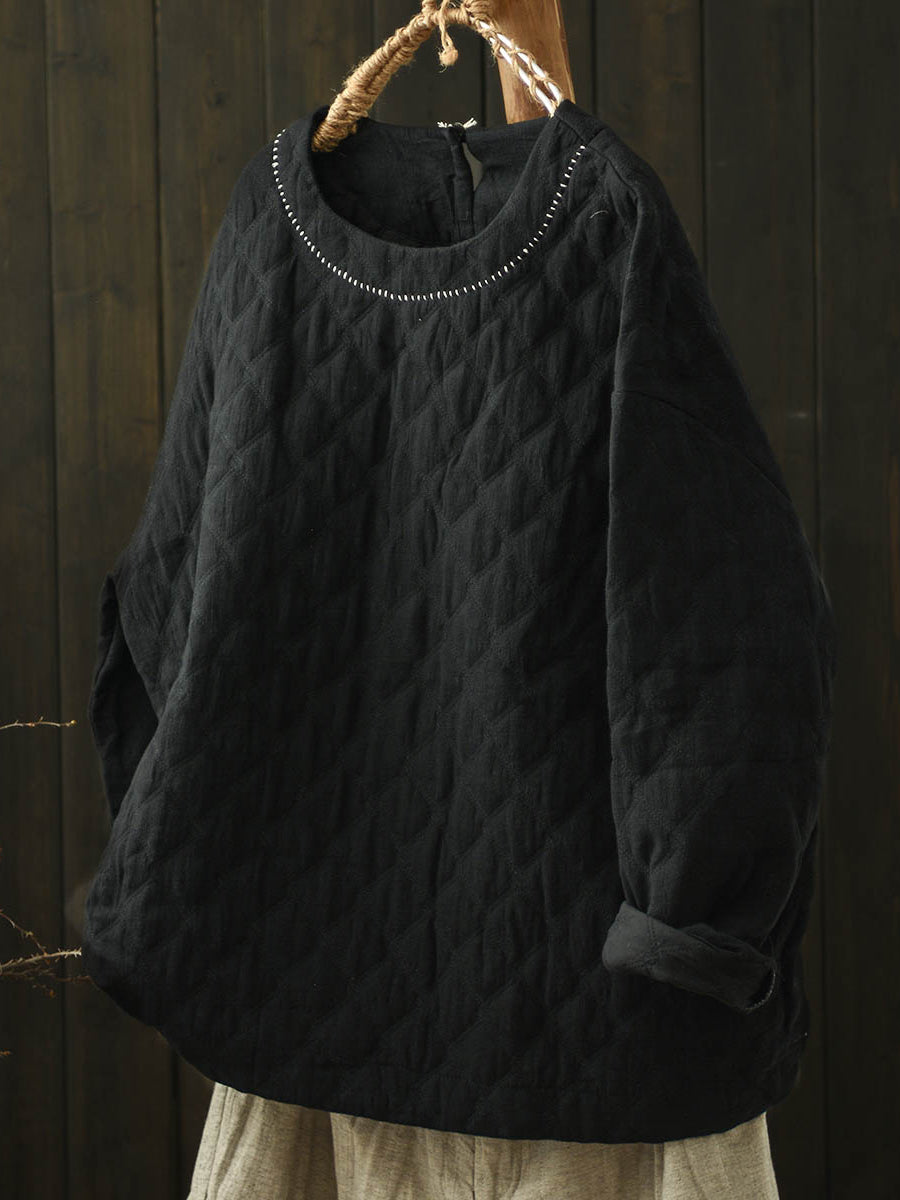 Women Autumn Casual Rhomboids O-Neck Padded Blouse