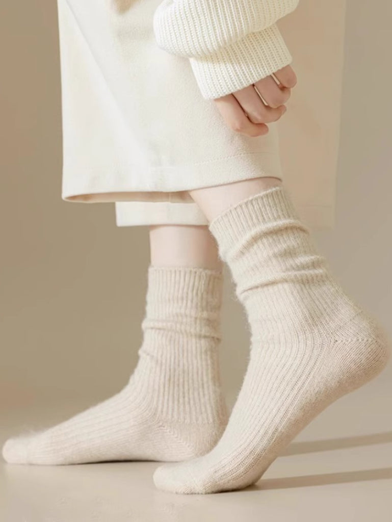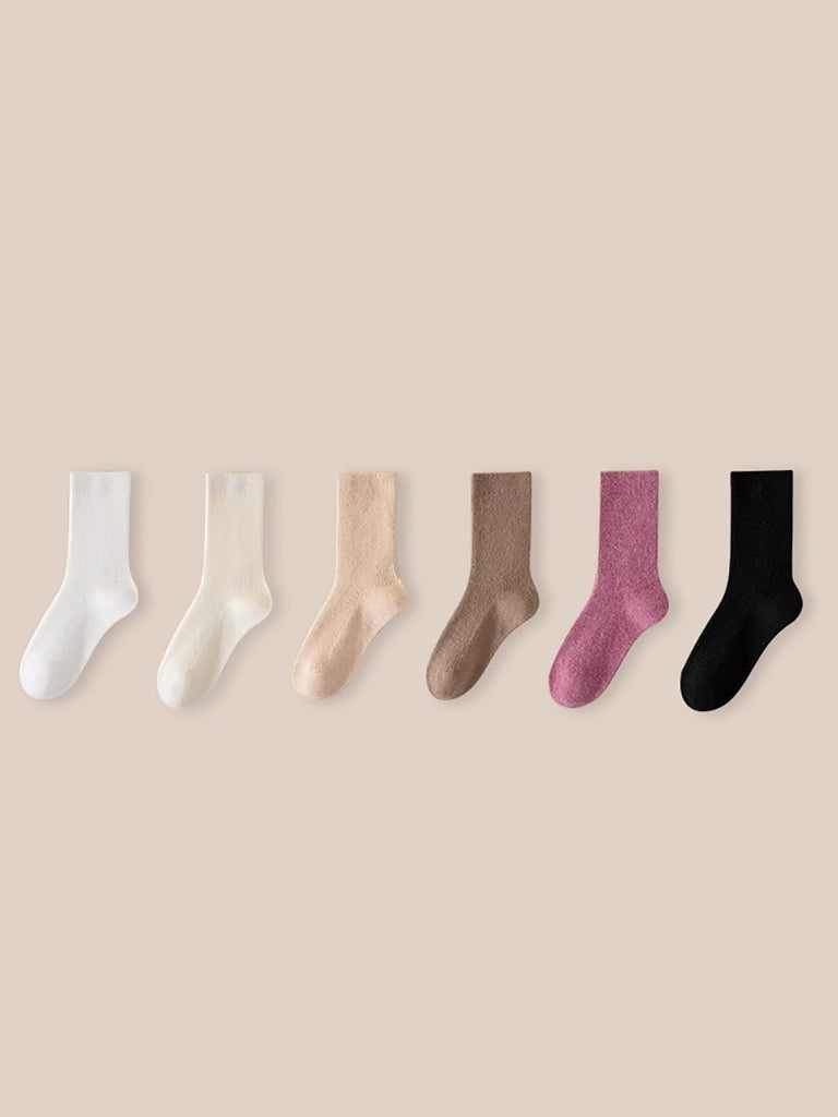 6 Pairs Women Winter Wool Pure Color Socks