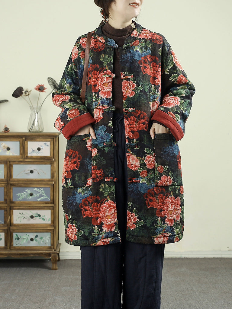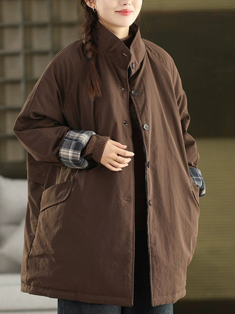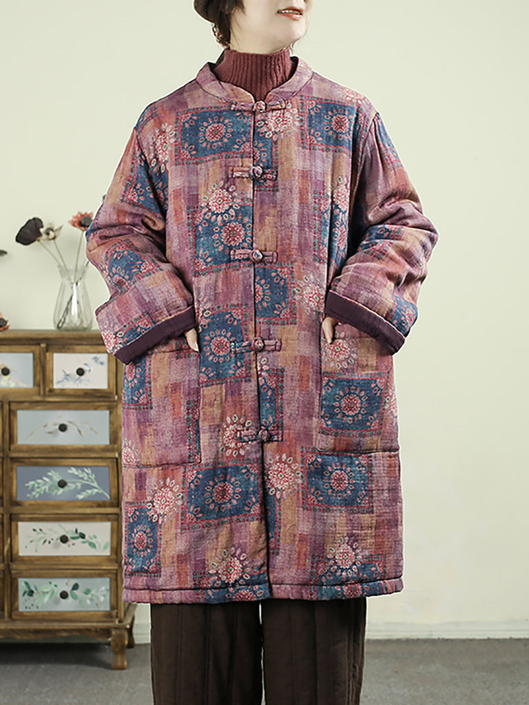 Women Winter Ethnic Patchwork Stand Collar Padded Coat