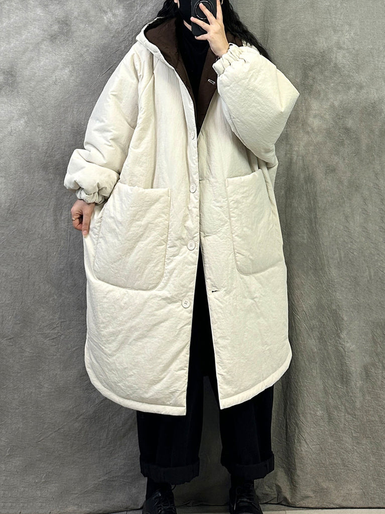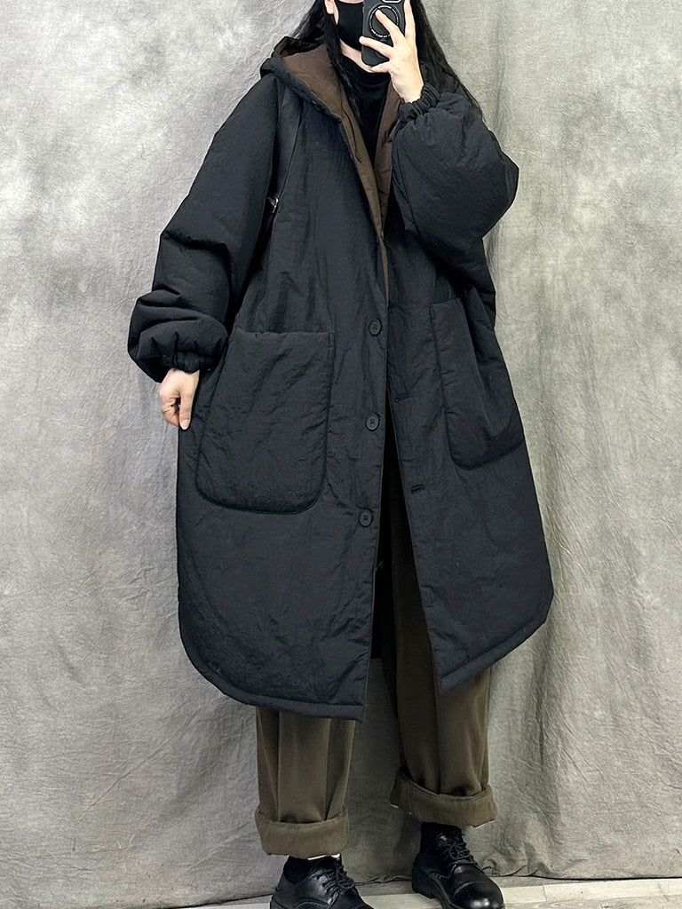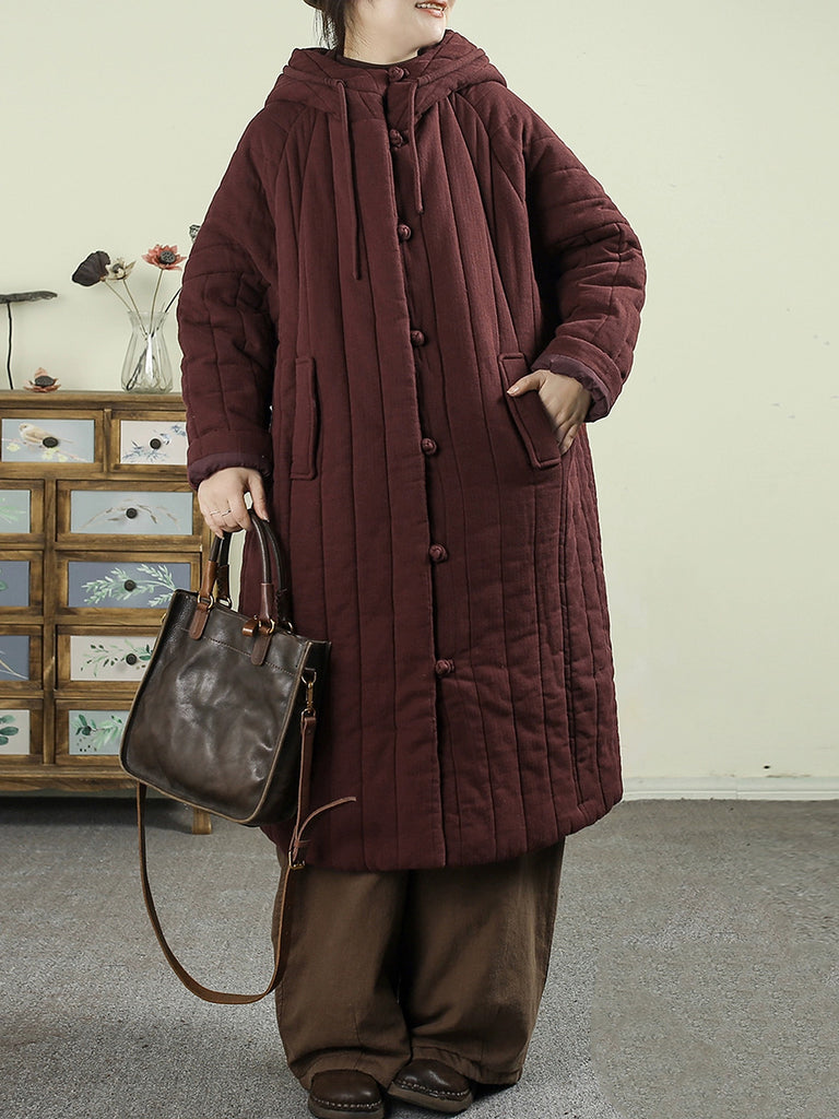 Women Winter Vintage Pure Color Padded Hooded Coat