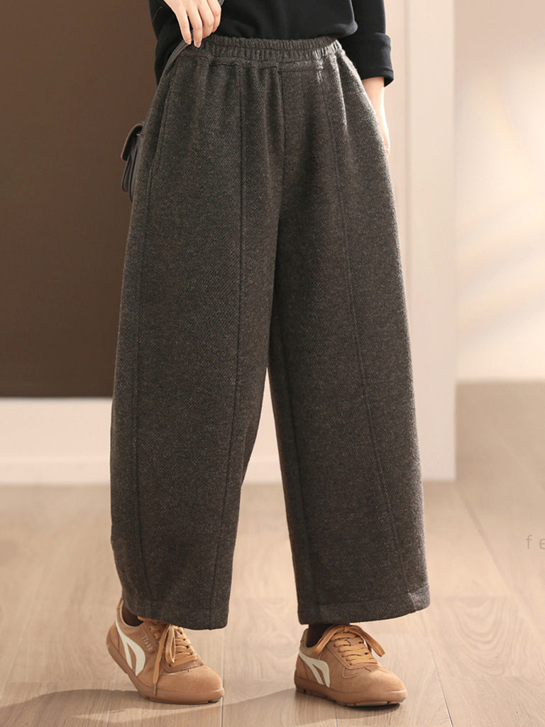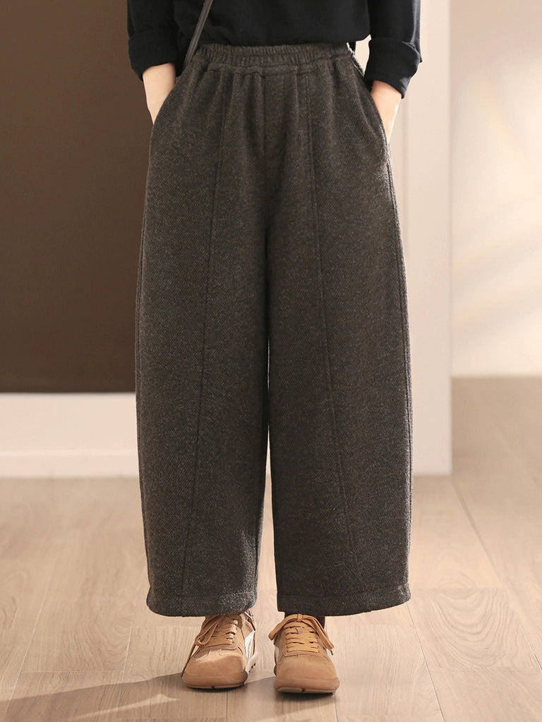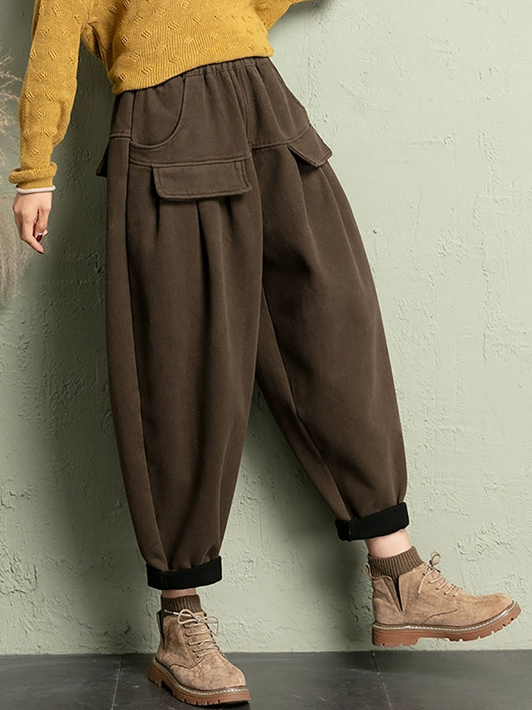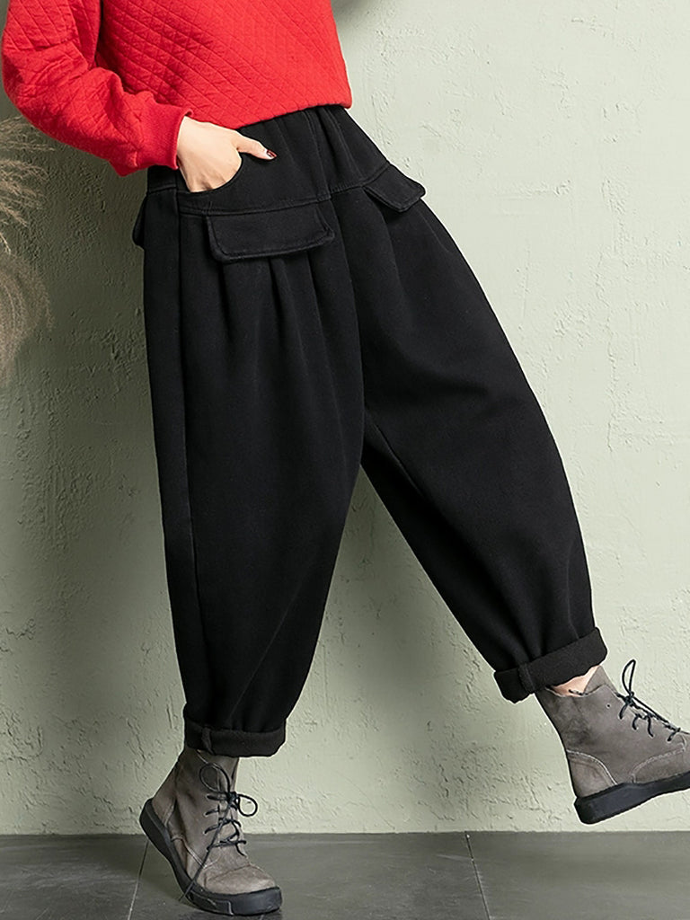 Women Winter Casual Pure Color Fleece-lined Harem Pants