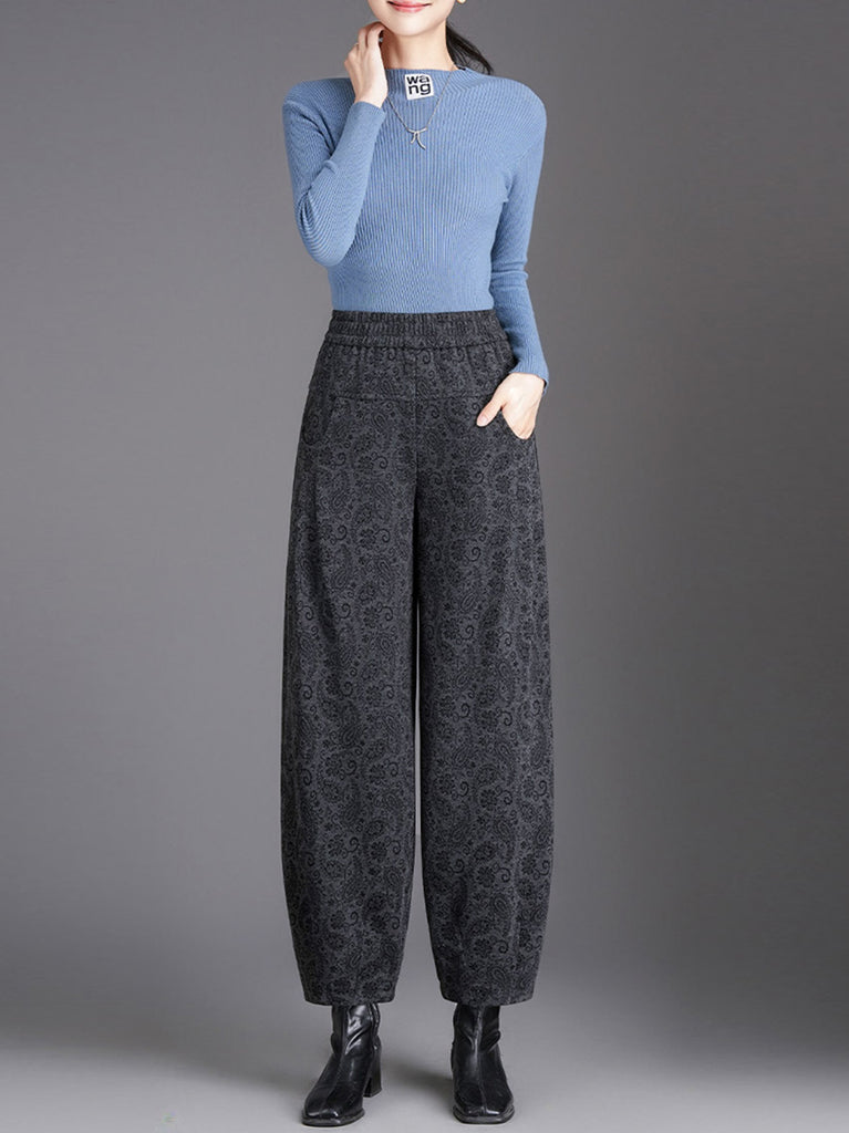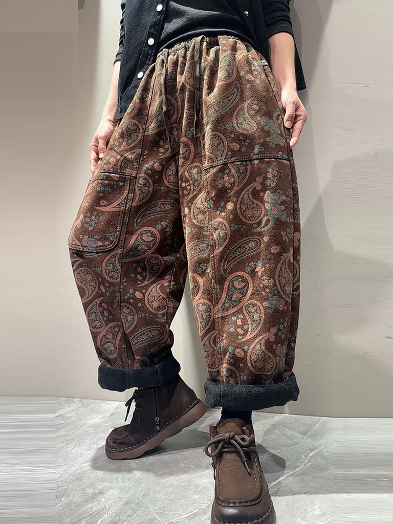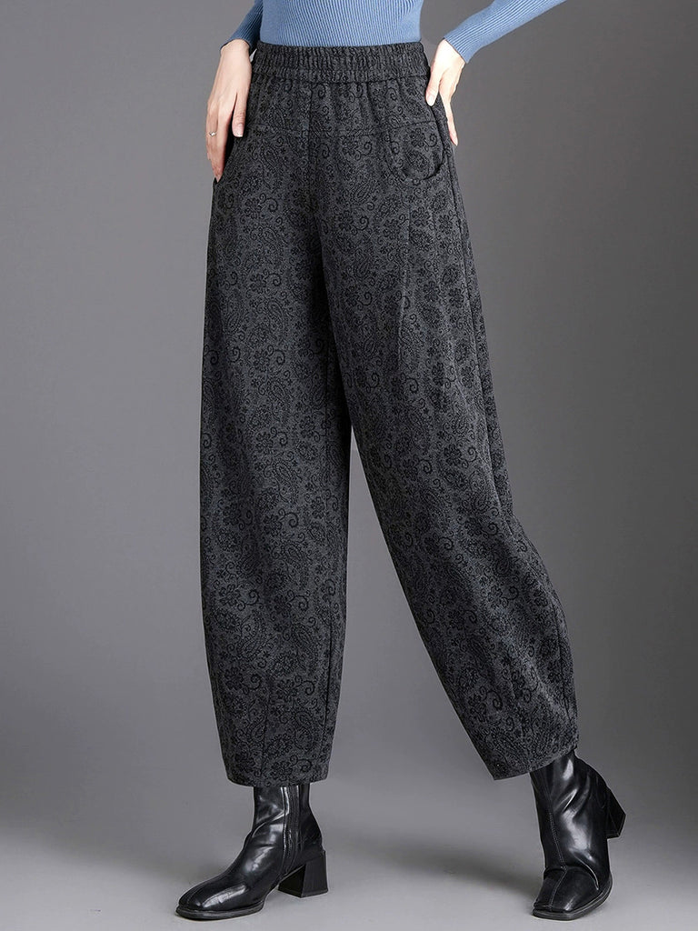 Women Vintage Flower Fleece-lined Harem Pants