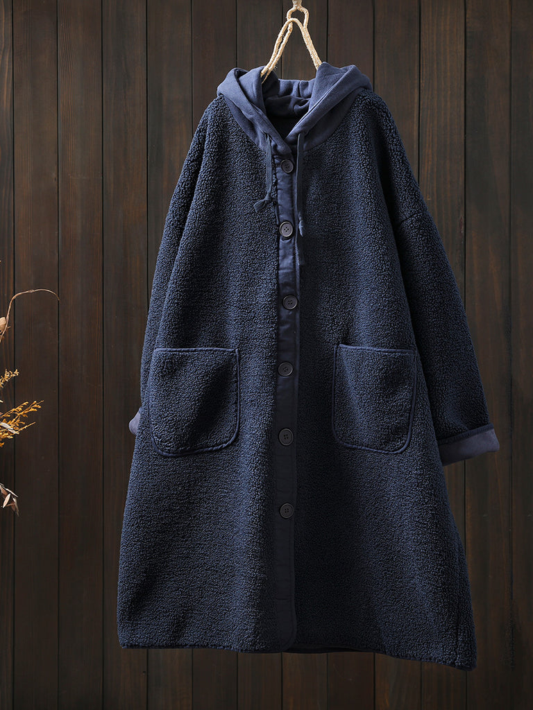 Women Winter Warm Fleece Hooded Coat