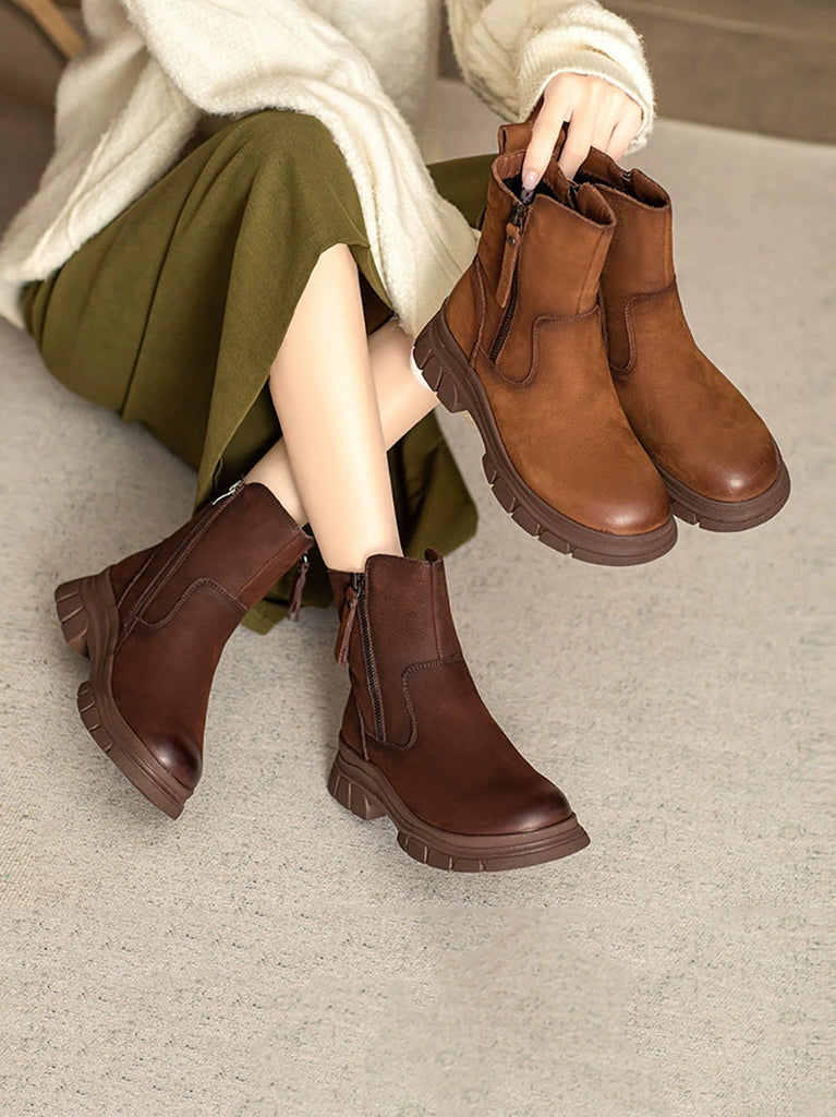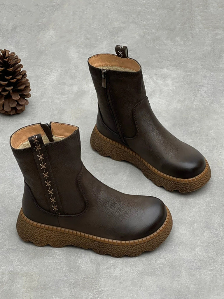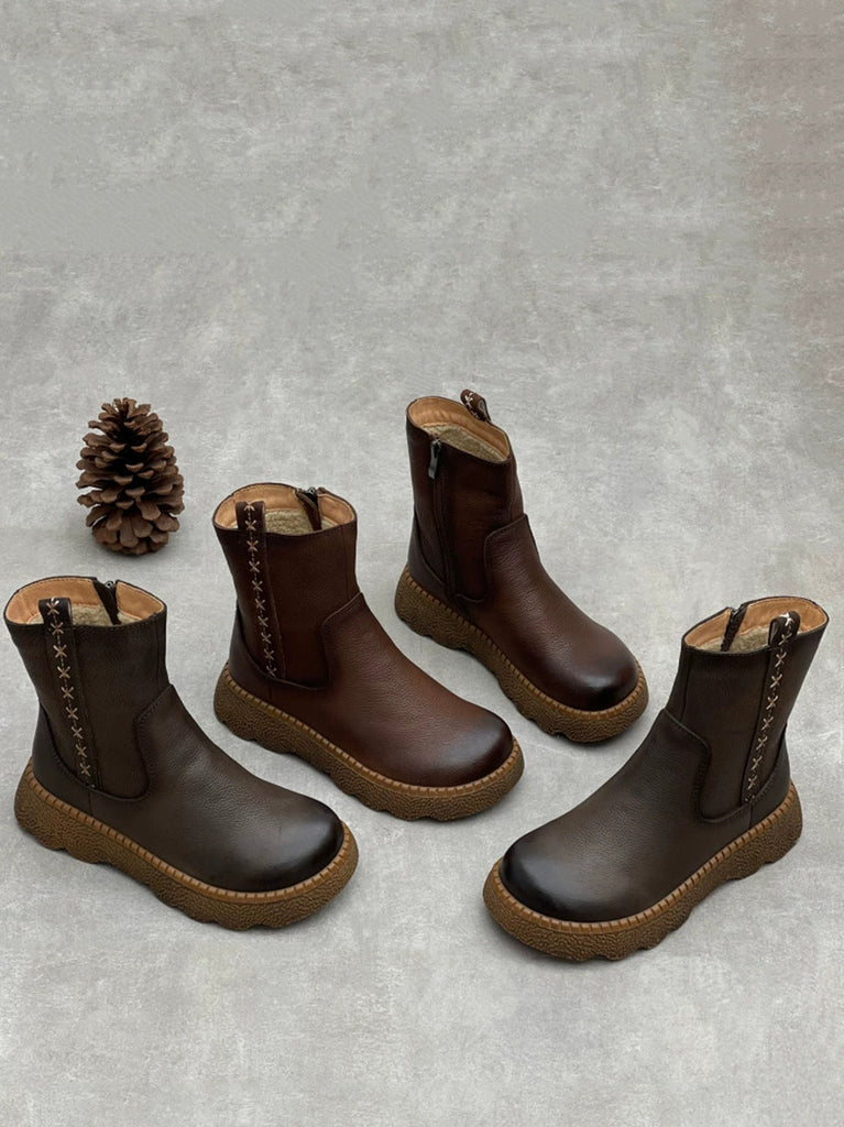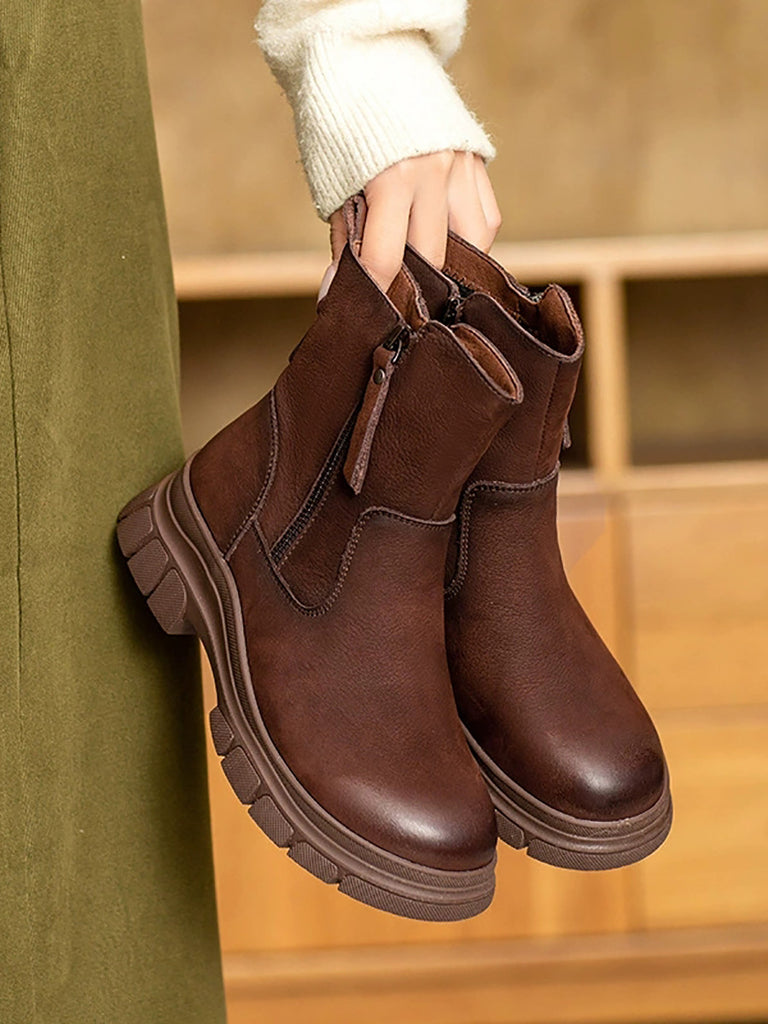 Women Vintage Genuine Leather Fleece-lined Boots