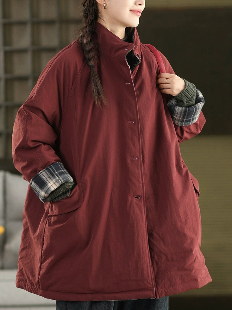 Women Winter Pure Color Dual-side Wearing Padded Coat