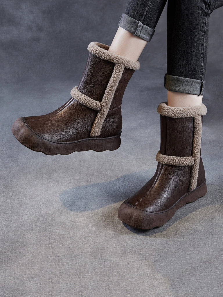 Women Vintage Genuine Leather Spliced Fleece-lined Boots