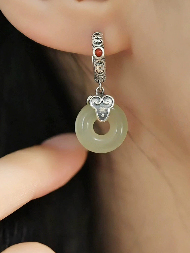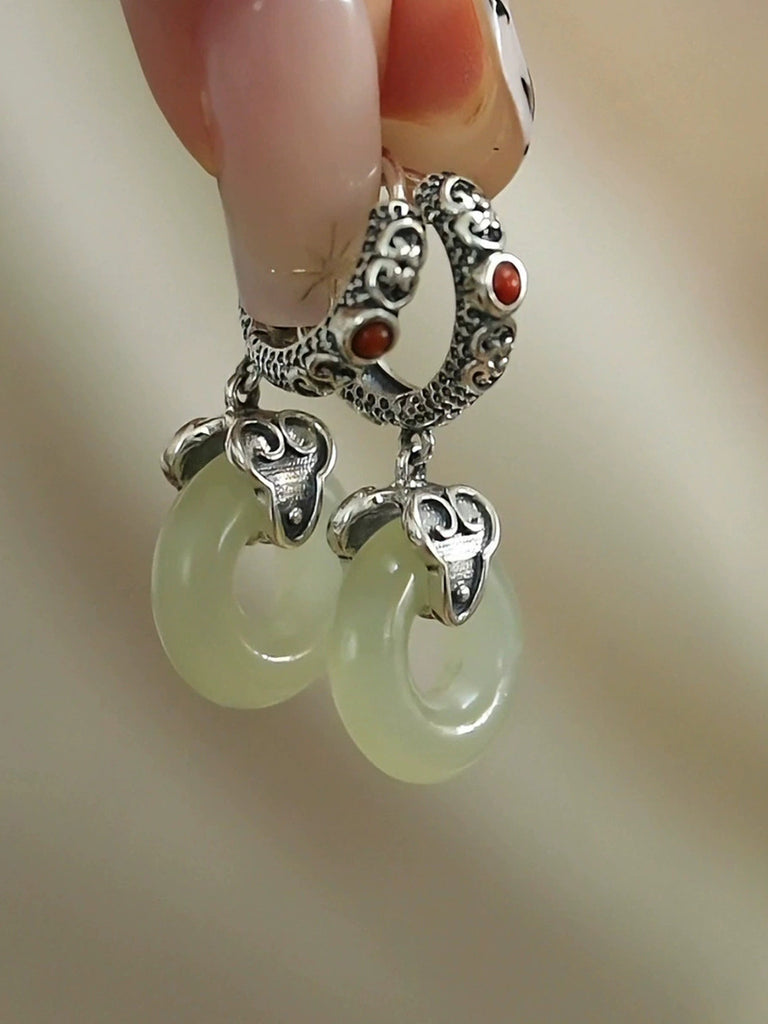 Women Vintage Alloy Jade Earrings